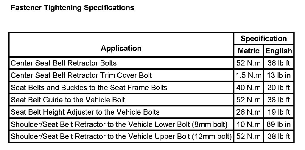 Seat Belt Systems: Specifications