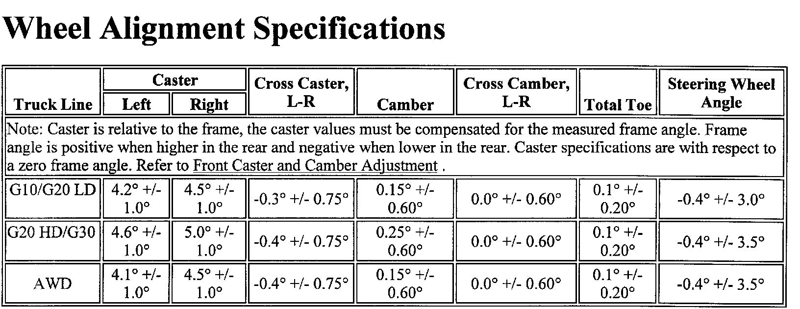 Wheel Alignment Specifications