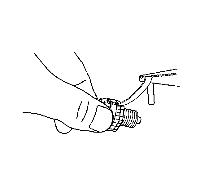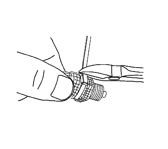 6. Wrap the tie strap around the necked porting of the sensor body just above the hex. Insert the end of the strap in the buckle and tighten by pulling the end with needlenose pliers.