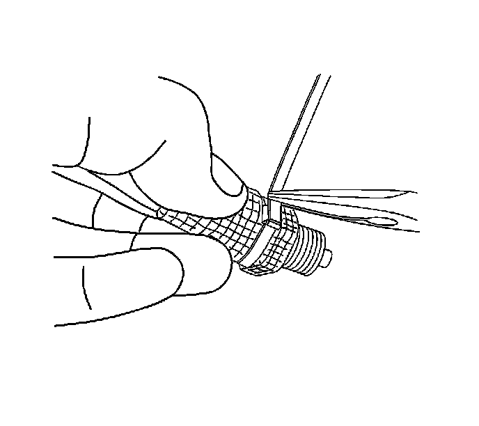 4. Tuck the top of the shield/tape under the head of the brass cable crimp sleeve all around, allowing the shield/tape to fold over and overlap itself at the top.