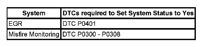 Inspection/Maintenance (I/M) System DTC Table: