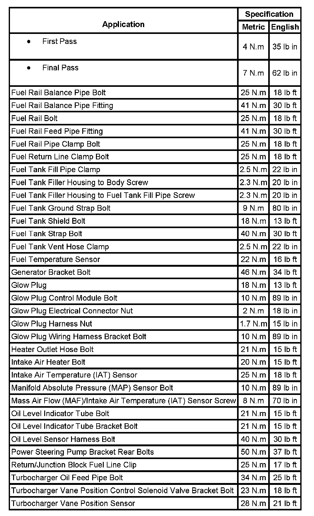 Fastener Tightening Specifications (Part 2):