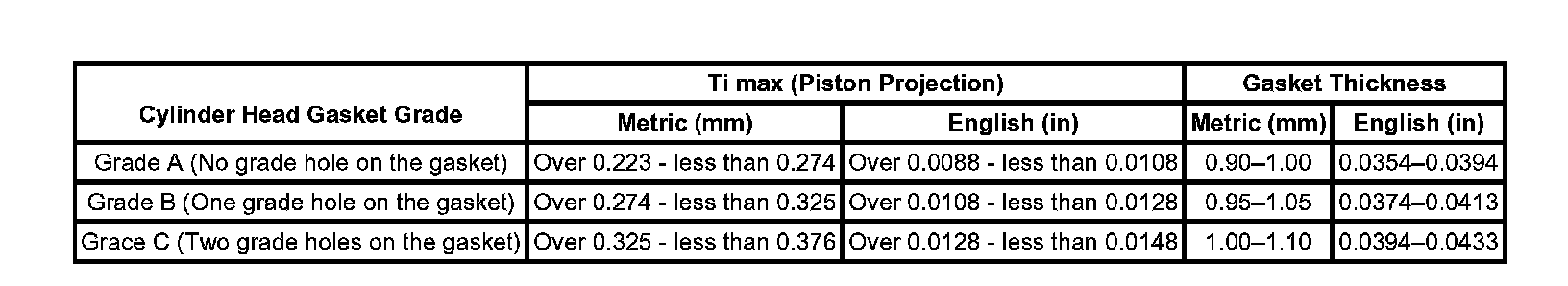 Cylinder Head Gasket Selection Specifications: