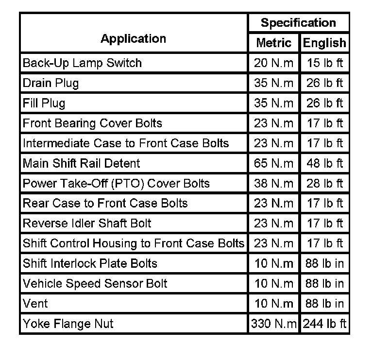 Fastener Tightening Specifications:
