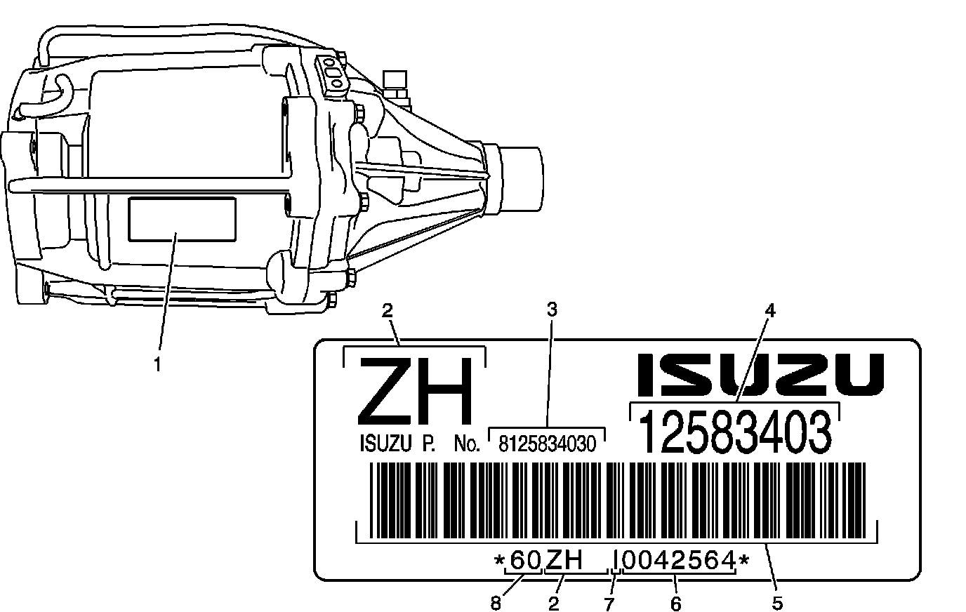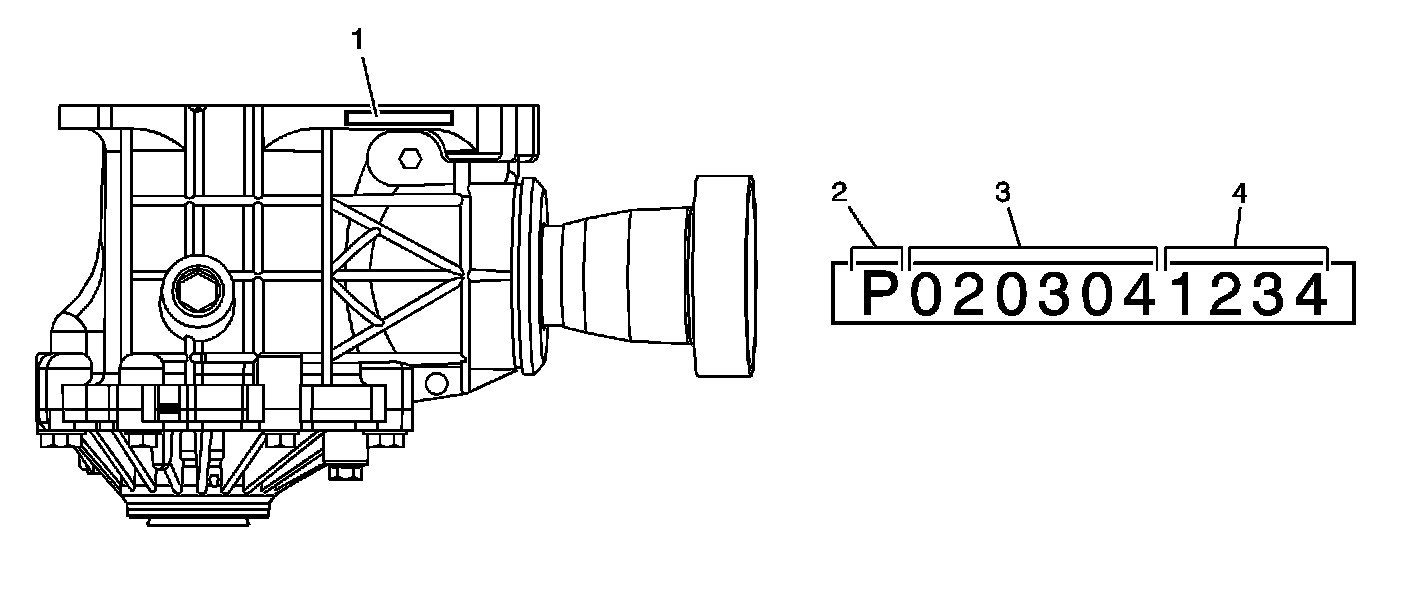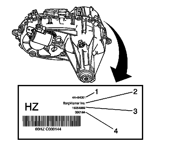 An identification tag is attached to the front half of the transfer case. The tag provides the following information: