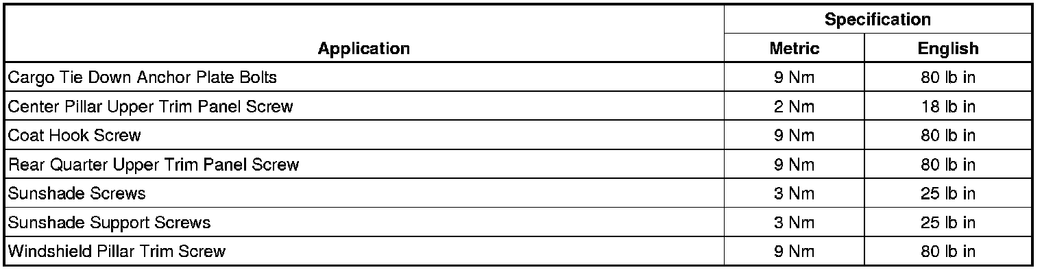 Interior Trim - Fastener Tightening Specifications