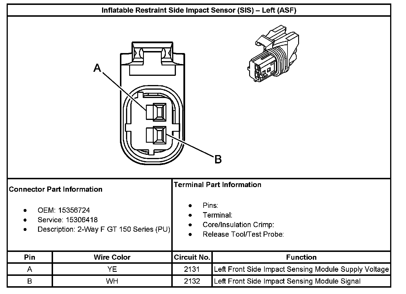 Inflatable Restraint Side Impact Sensor (SIS) - Left (With RPO Code ASF):