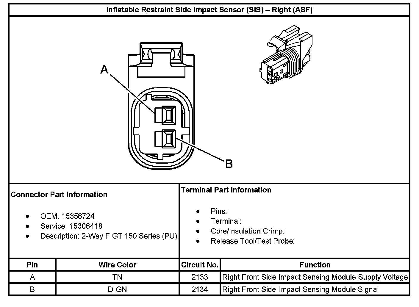 Inflatable Restraint Side Impact Sensor (SIS) - Right (With RPO Code ASF):