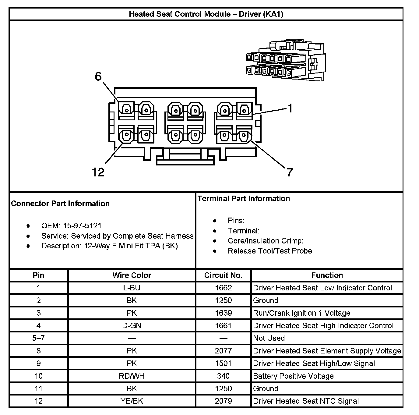 Heated Seat Control Module - Driver (With RPO Code KA1):
