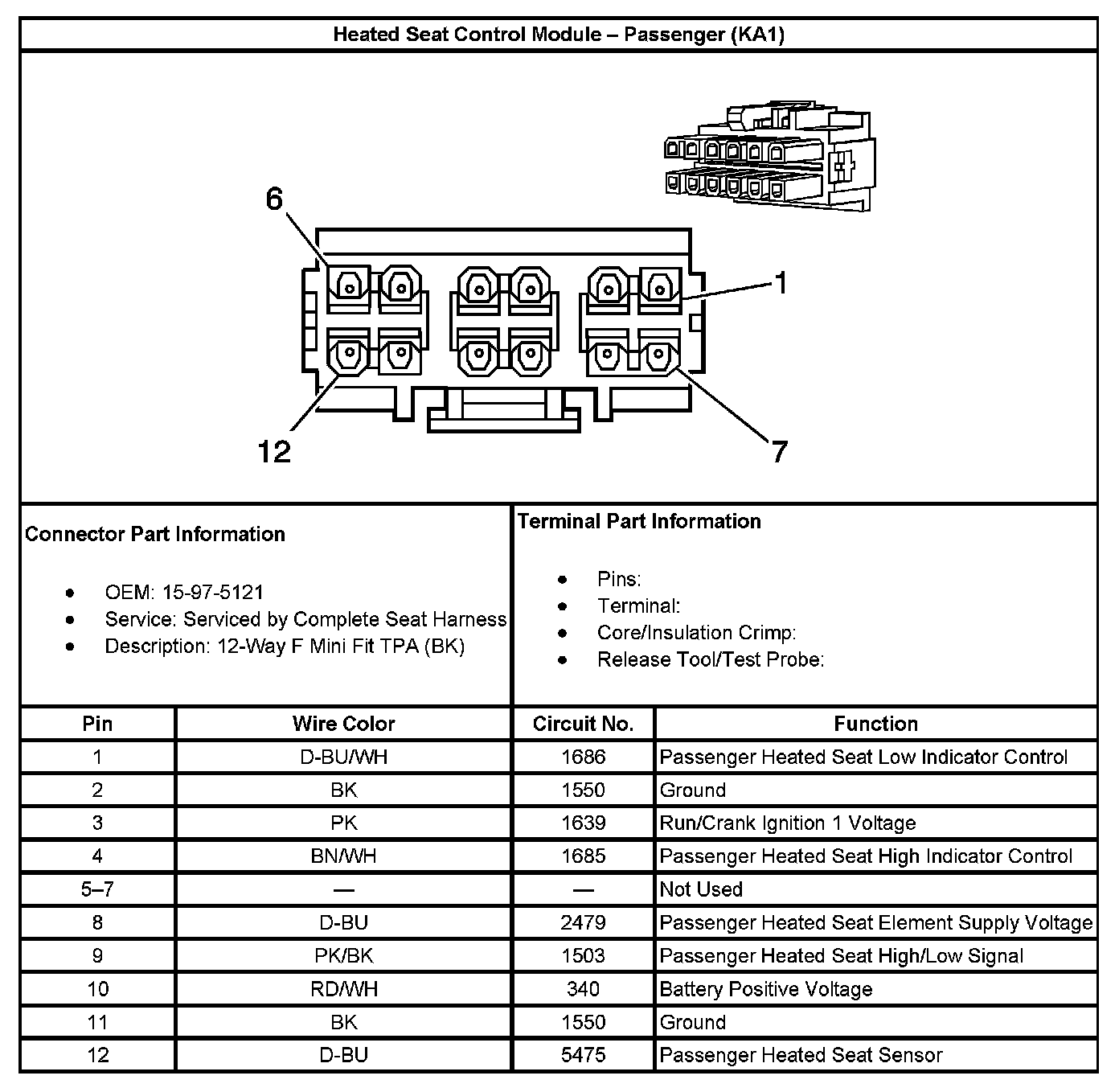 Heated Seat Control Module - Passenger (With RPO Code KA1):