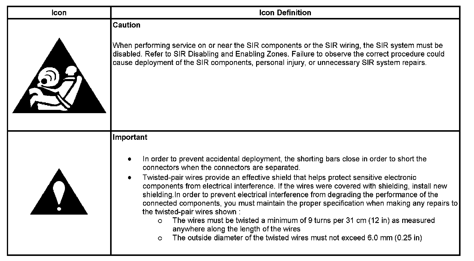 Air Bag System Schematic Icons