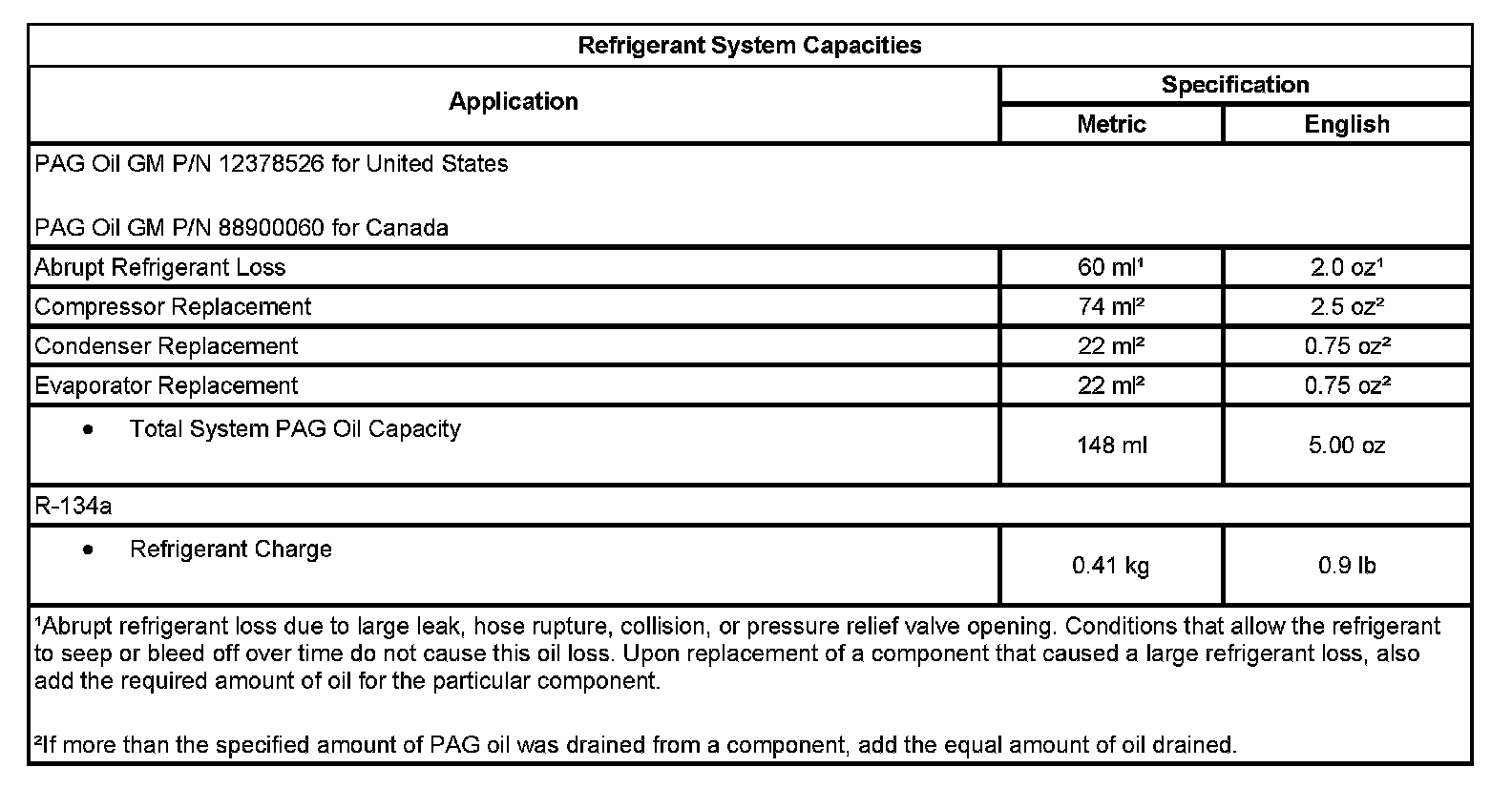 Refrigerant System Capacities: