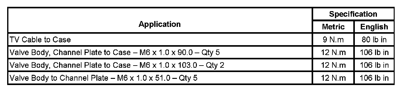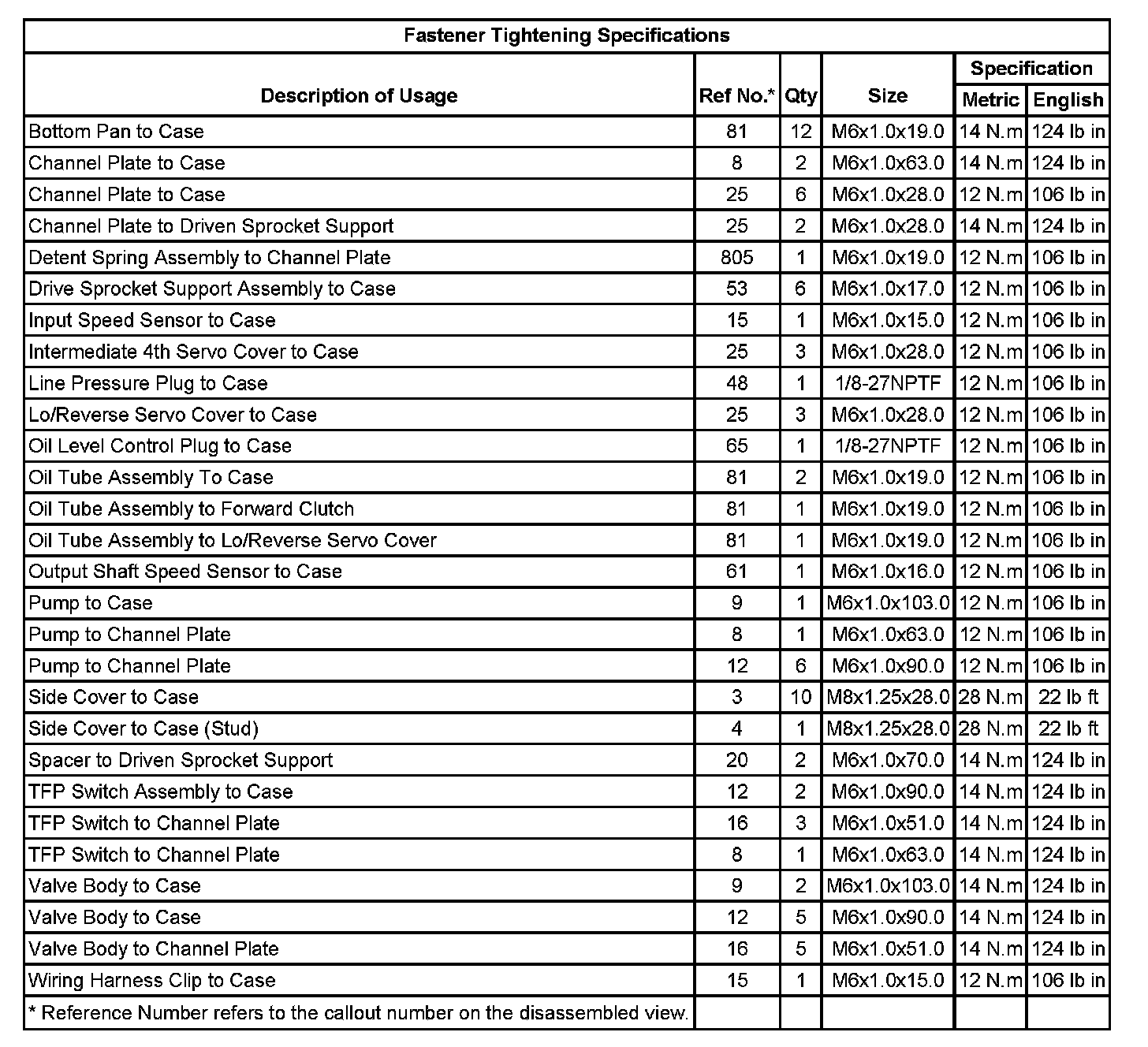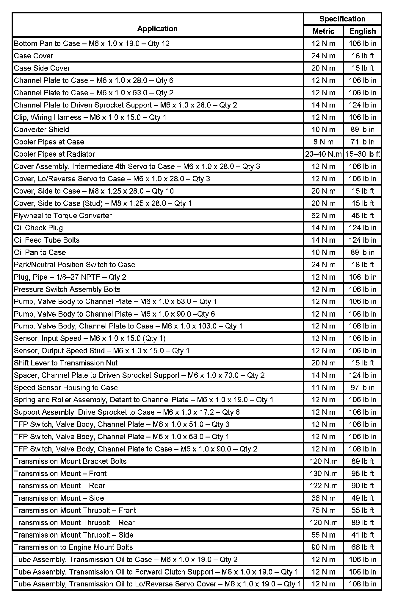 Fastener Tightening Specifications: