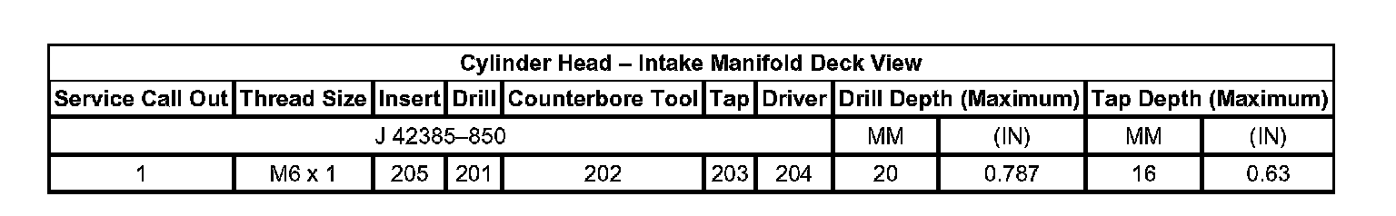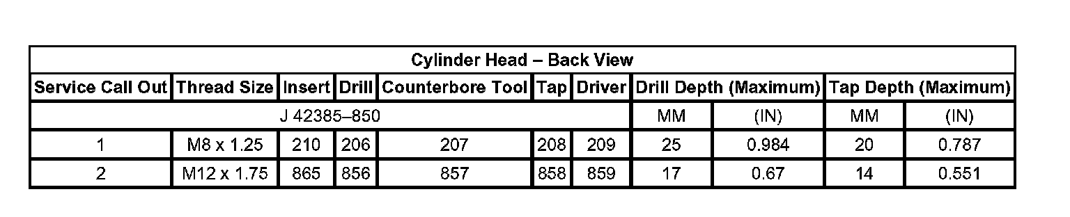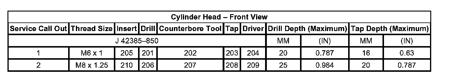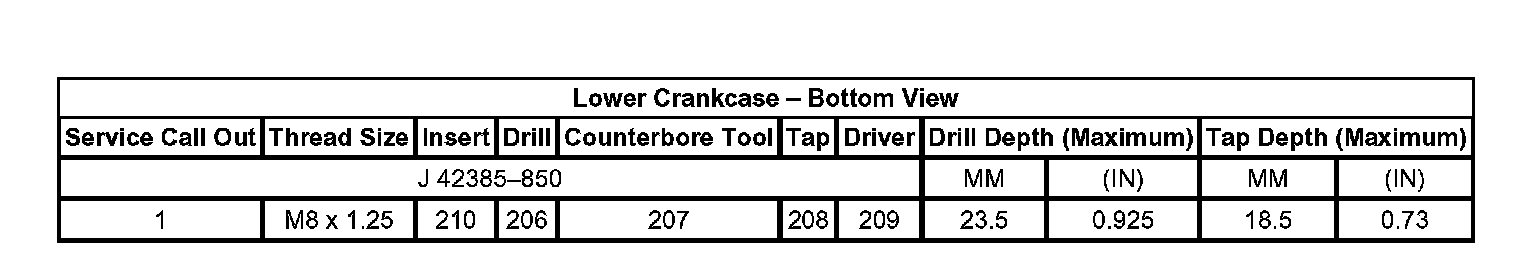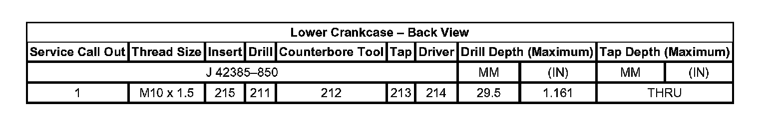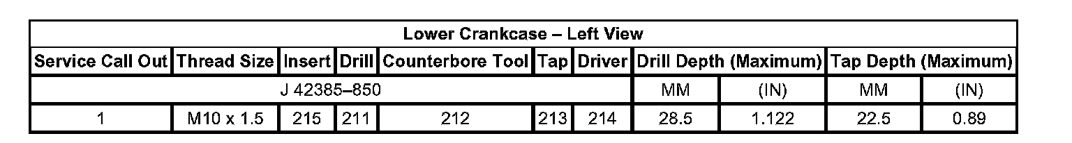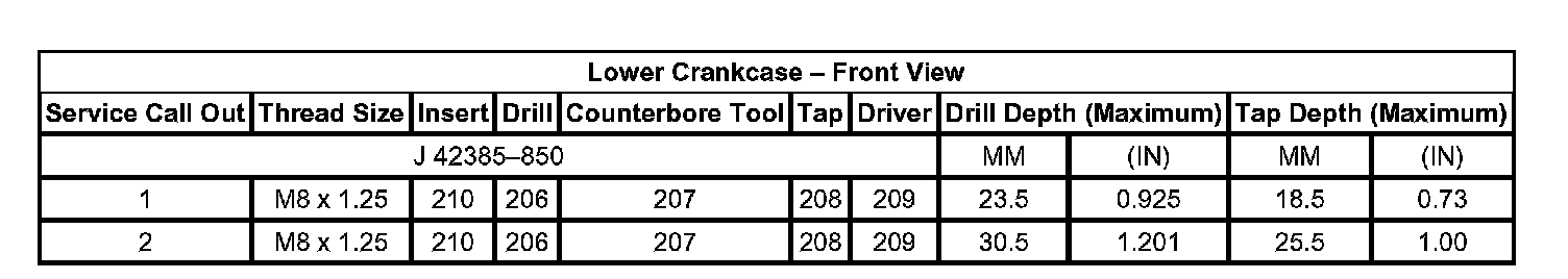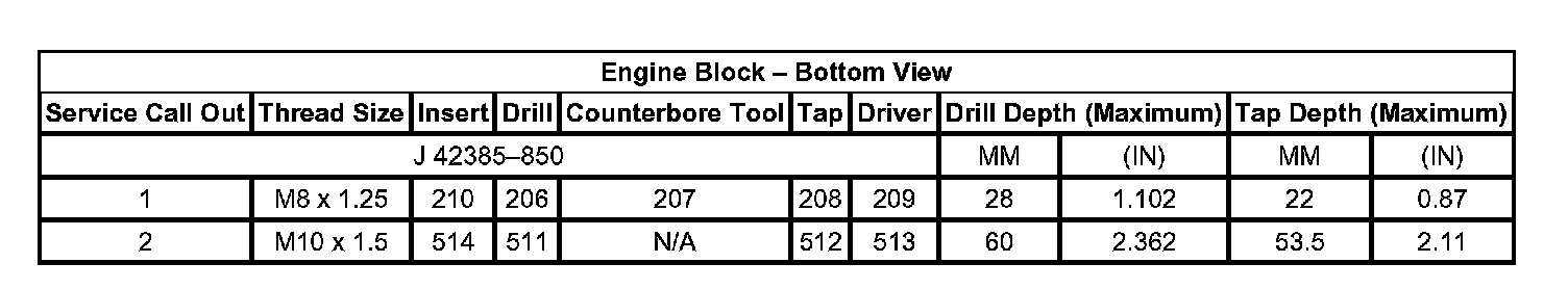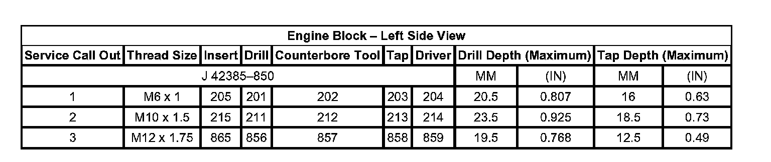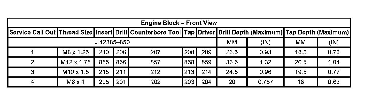 Thread Repair Specifications Engine Block - Front View: