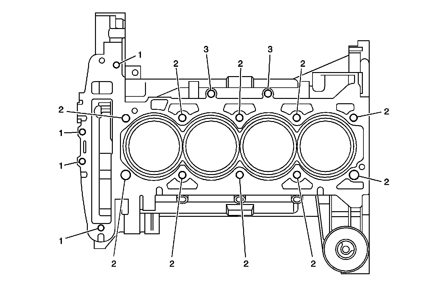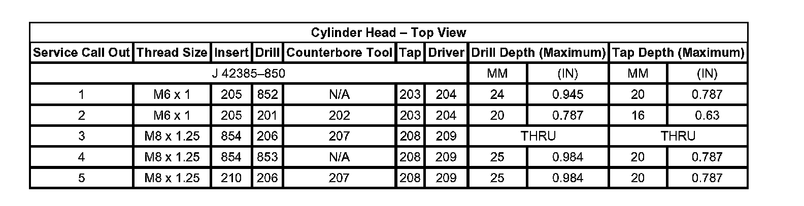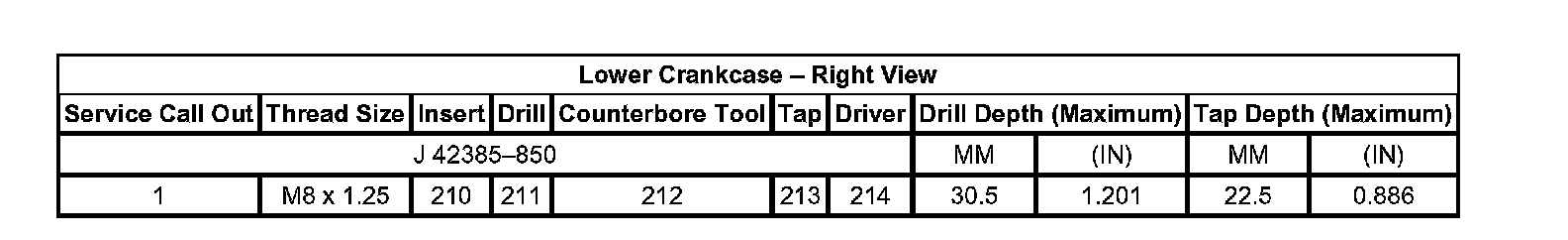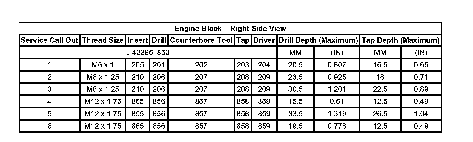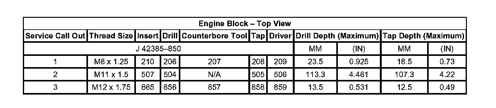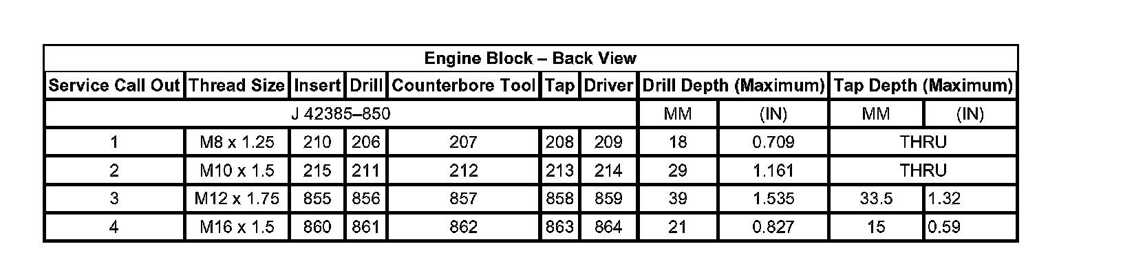 Thread Repair Specifications Engine Block - Front View: