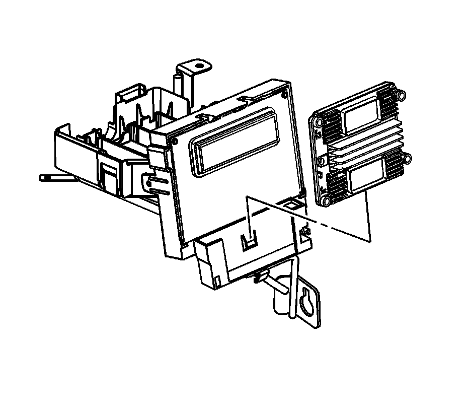1. Place the lower right corner of the TCM into the under hood junction block bracket.