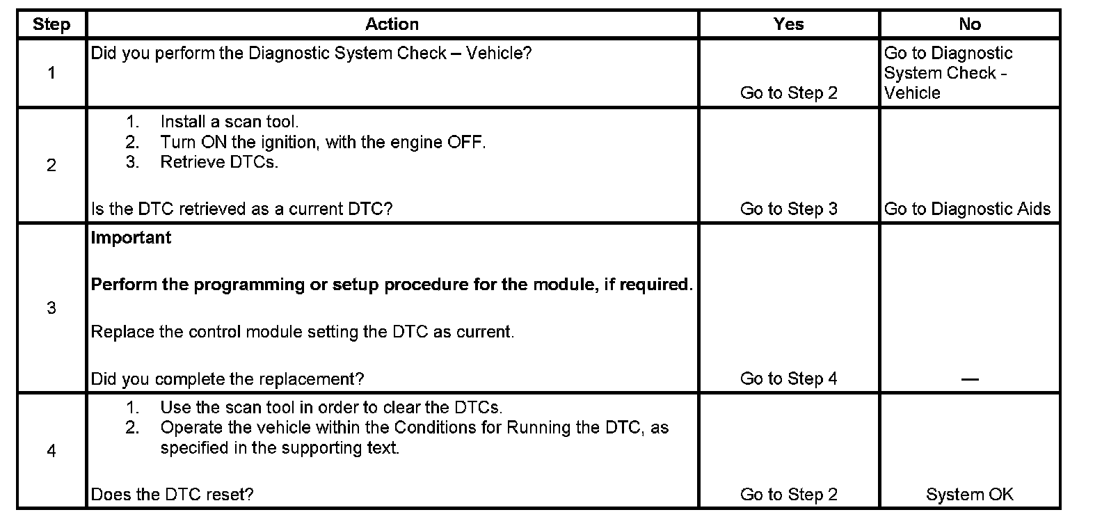 - If this DTC is retrieved as both a current and a history DTC, replace the module.