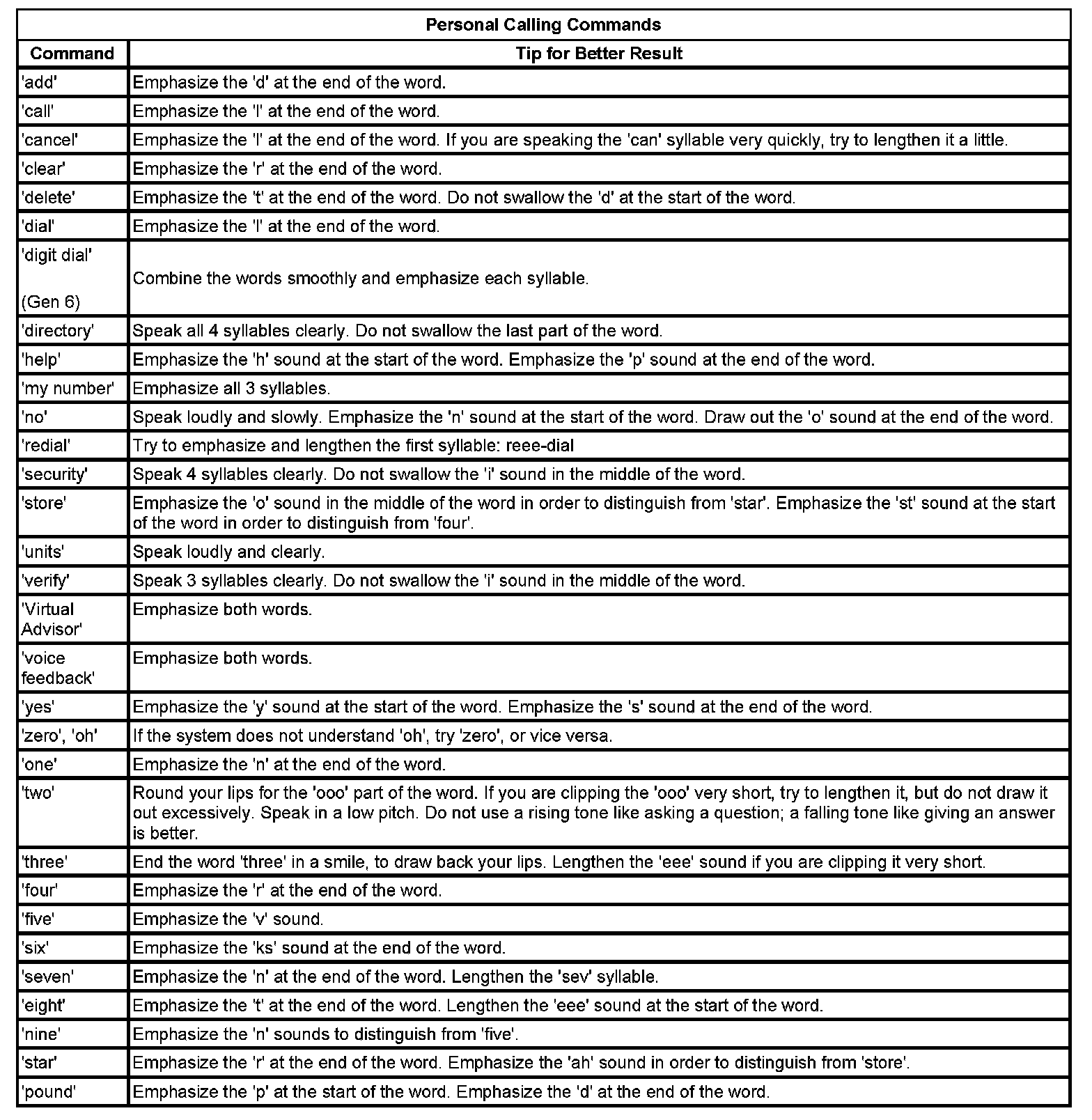 - Personal Calling uses a speech recognition system that resides in the vehicle. When the user presses the dot button, the system states, Ready, and listens for the user's command. The user can speak commands to control the hands-free phone.