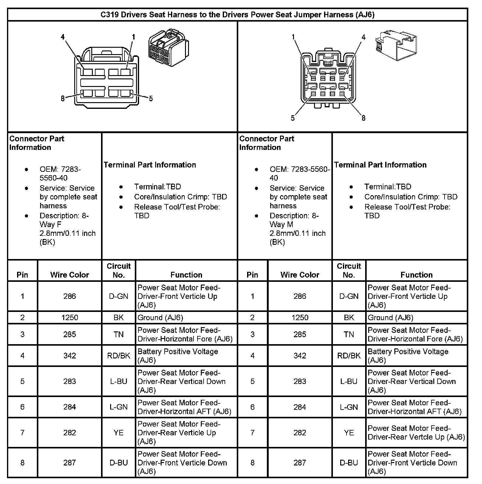 C319 Driver Seat Harness To The Driver Power Seat Jumper Harness (With RPO Code AJ6):