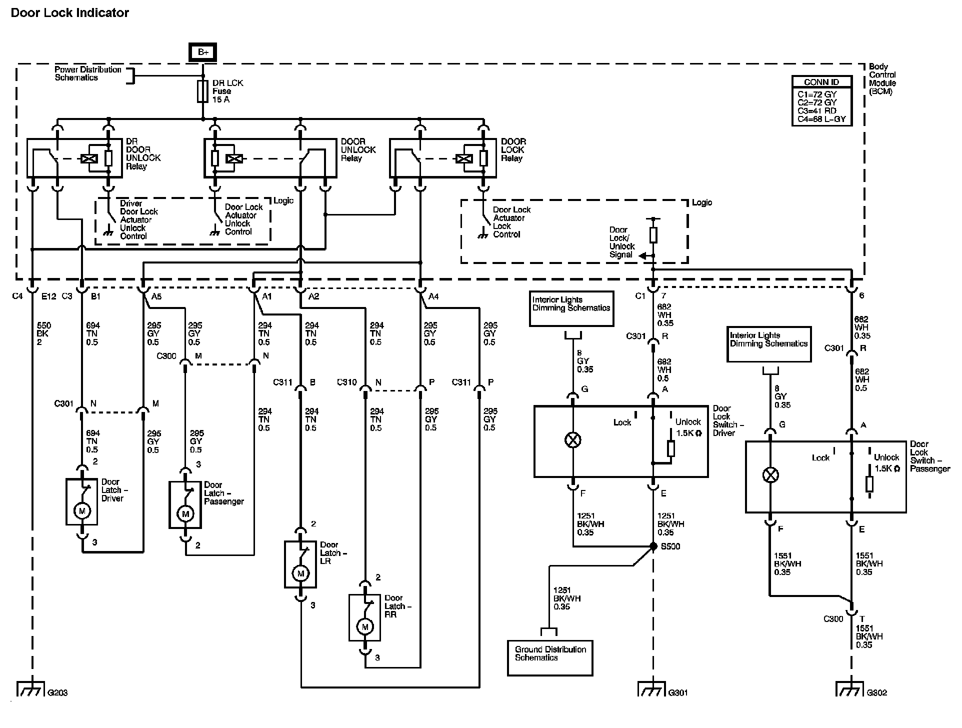 The locations for the Connectors, Grounds, Splices, and Grommets shown within these diagrams can be found via their numbers at Vehicle Locations.