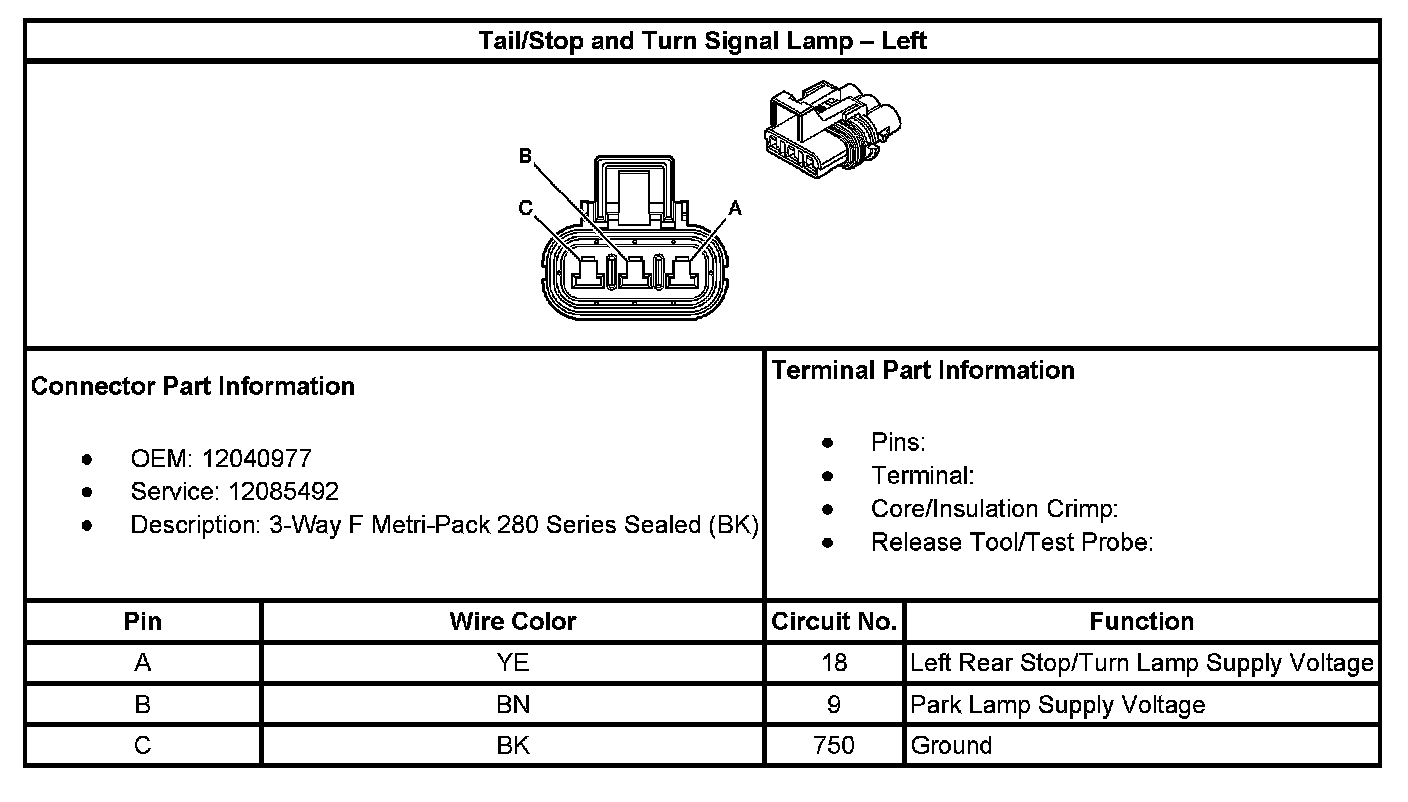 Tail/Stop And Turn Signal Lamp - Left: