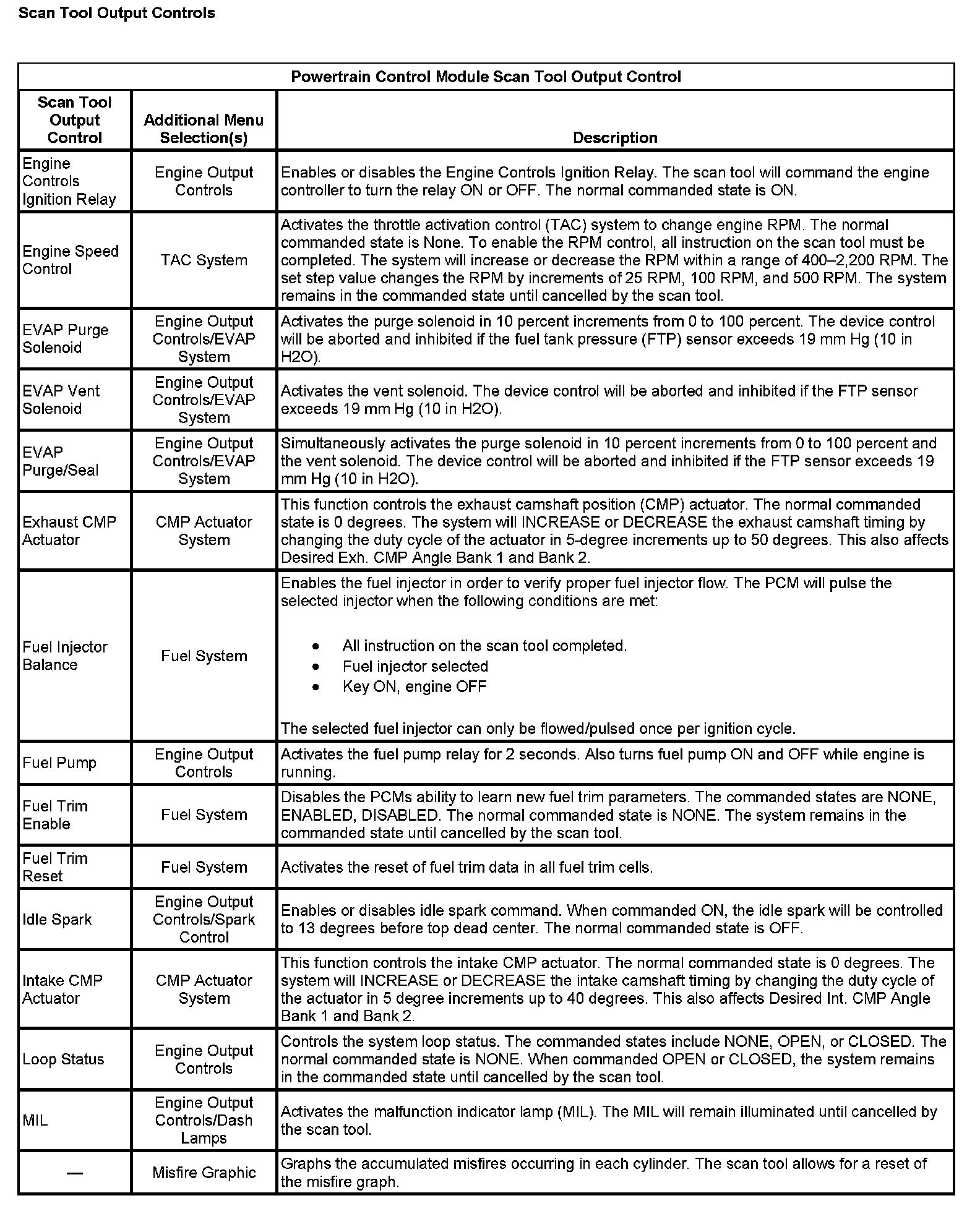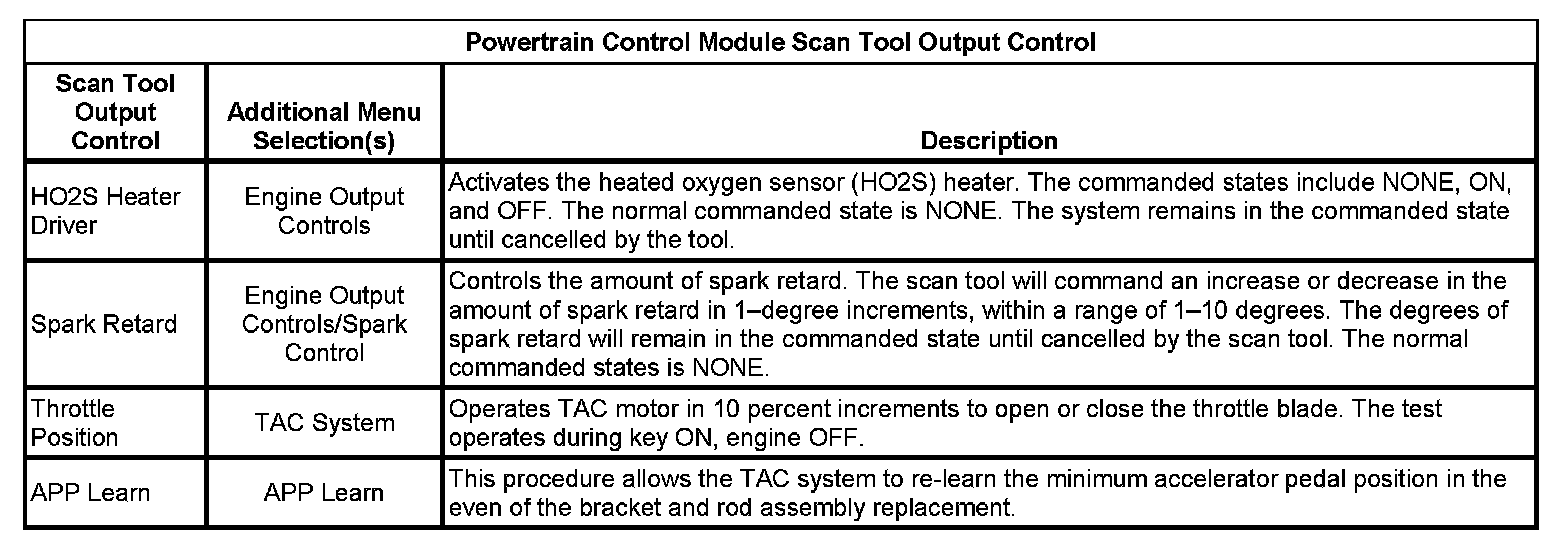 Scan Tool Output Controls