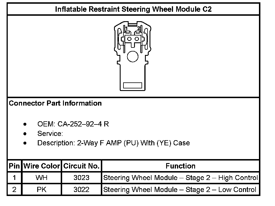 Inflatable Restraint Steering Wheel Module C2: