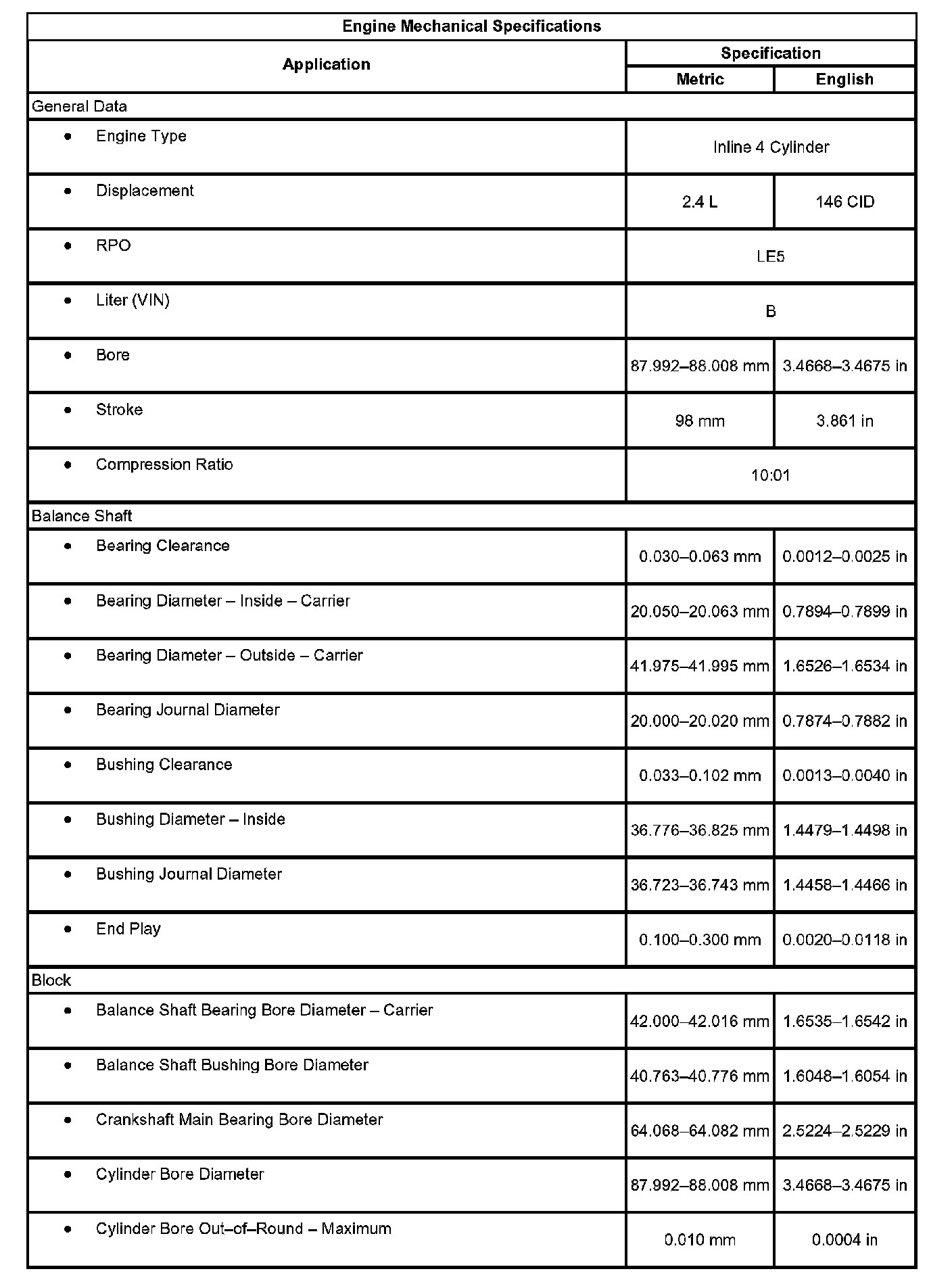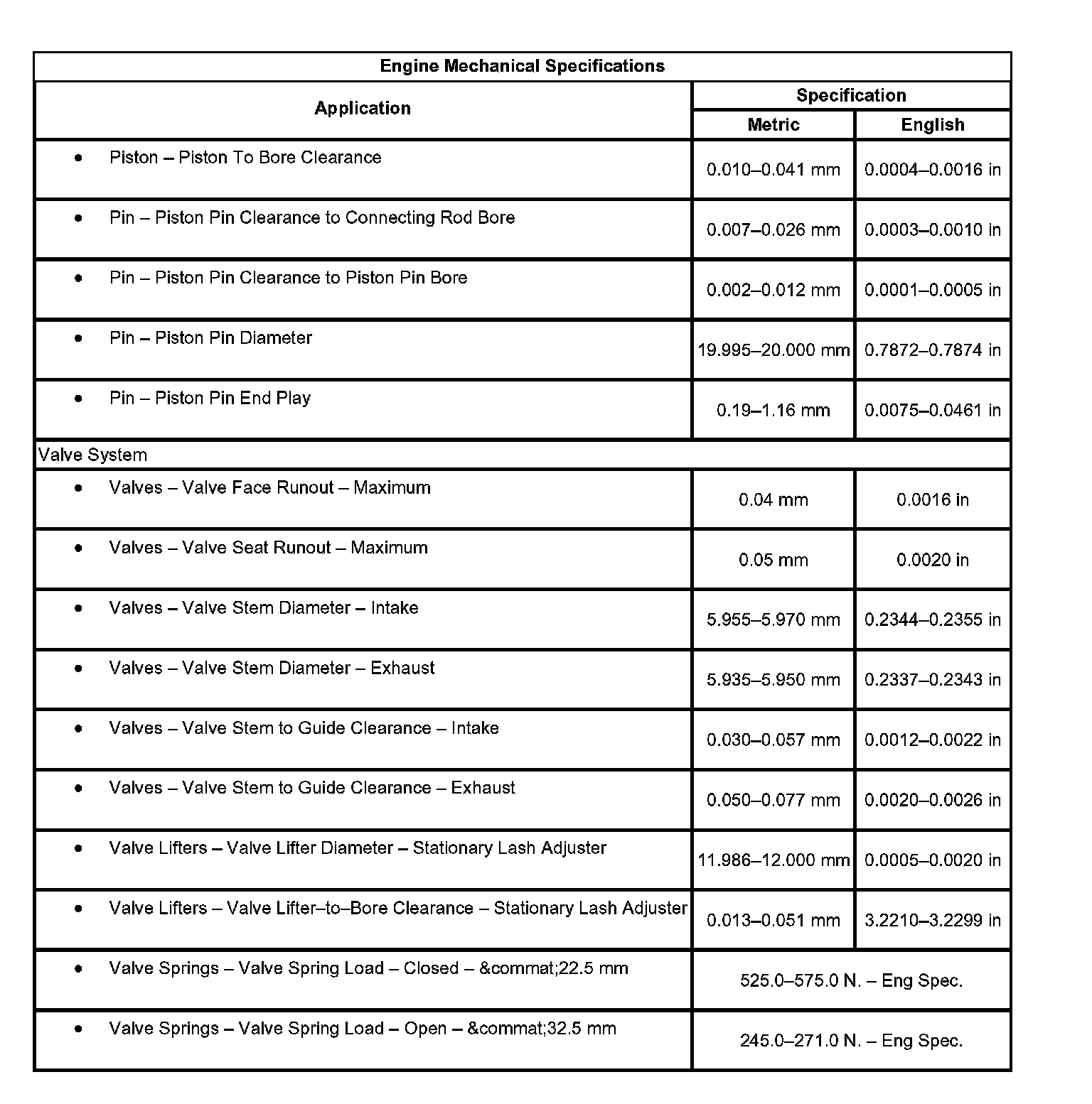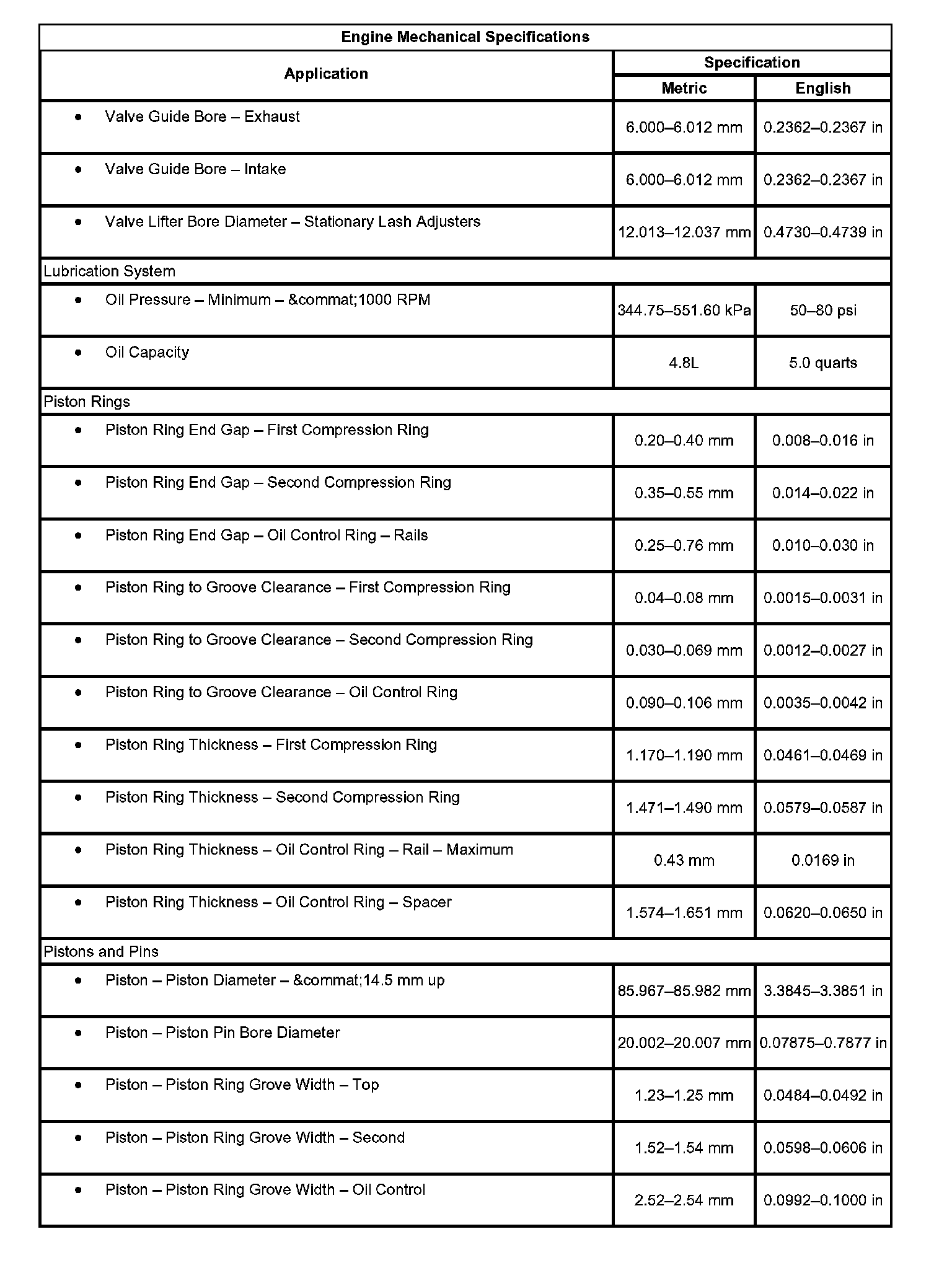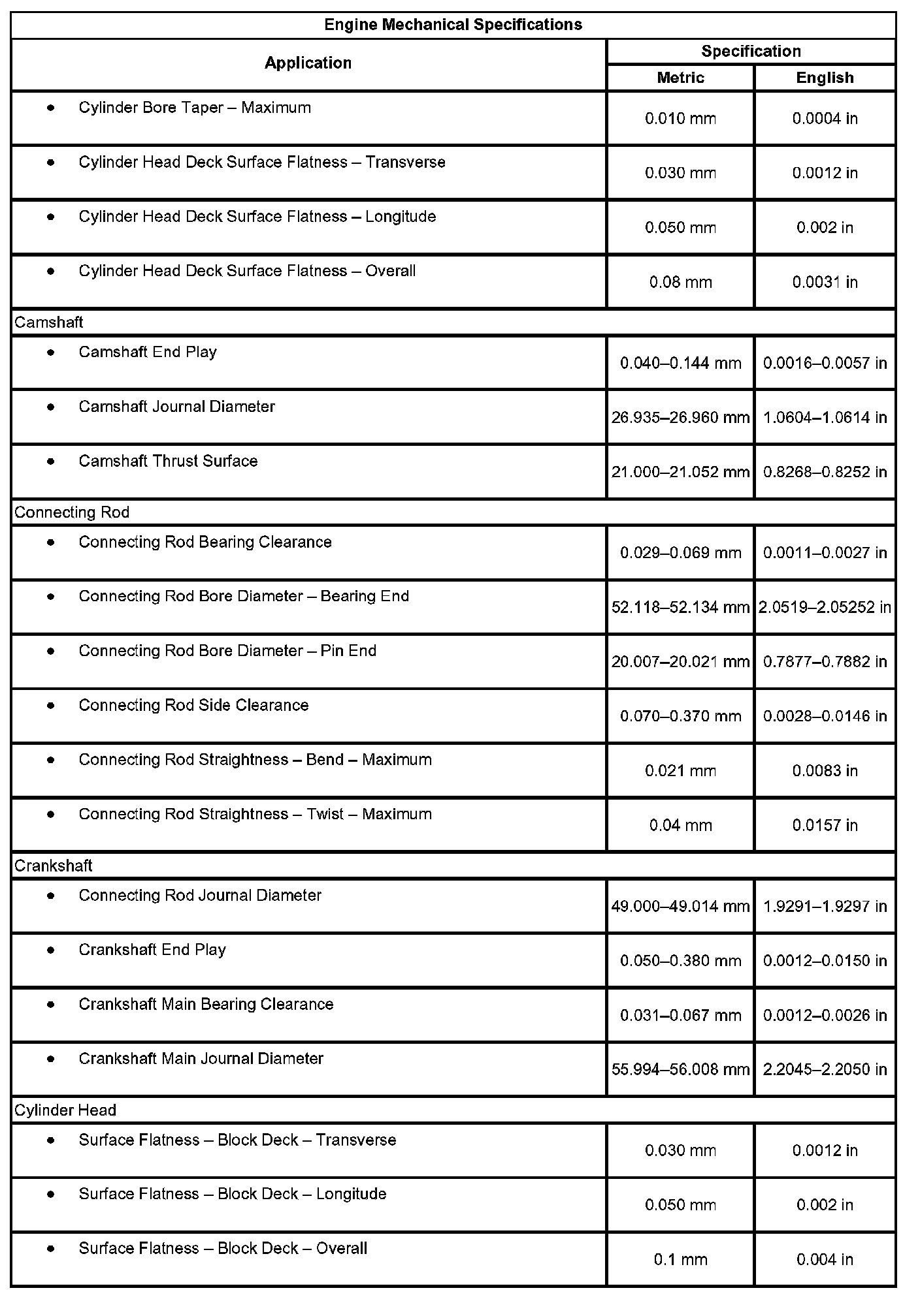 Engine Mechanical Specifications: