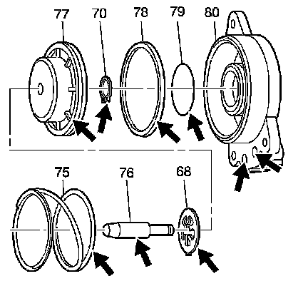 5. Discard the servo piston seals (78 and 79). Do not reuse the servo piston seals.