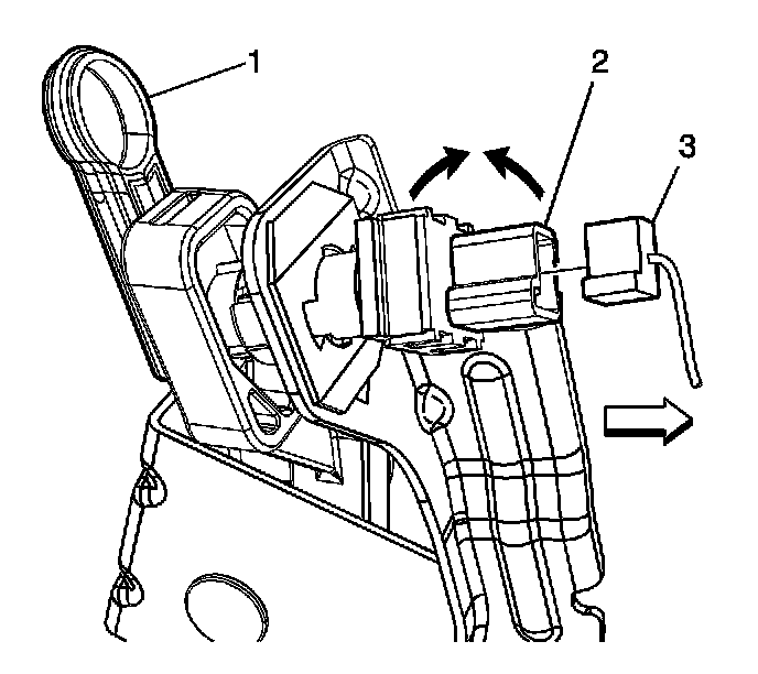 2 While holding the pedal in the fully released position, press the switch (2) toward the pedal until the barrel of the switch touches the shipping clip (1) on the new pedal assembly.