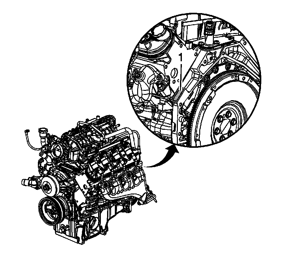 The vehicle identification number (VIN) is located on the left side rear of the engine block (1) and is typically a 9 digit number stamped or laser-etched onto the engine at the vehicle assembly plant.