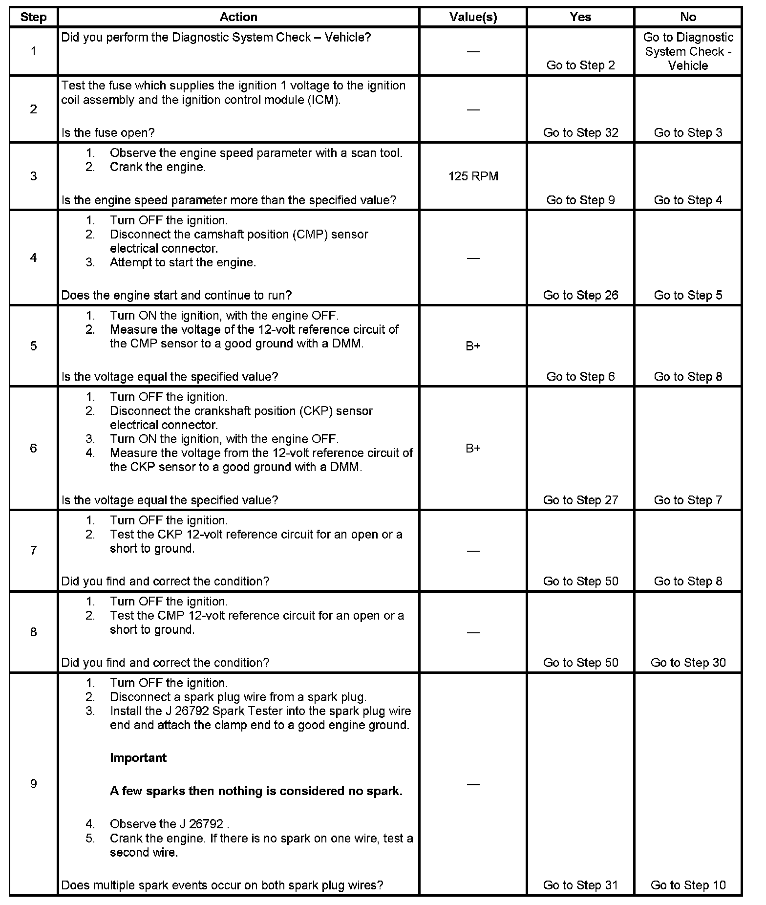 3. This step tests for a CKP signal to the PCM.