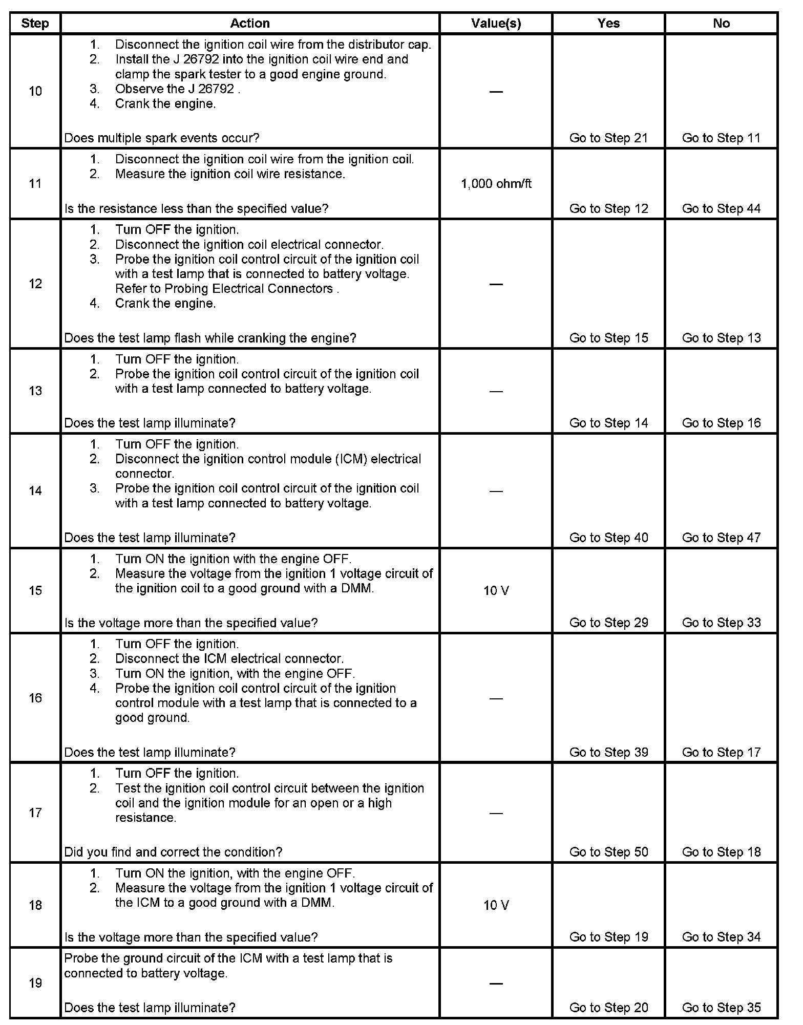 10. This step determines if spark is being delivered to the distributor cap.