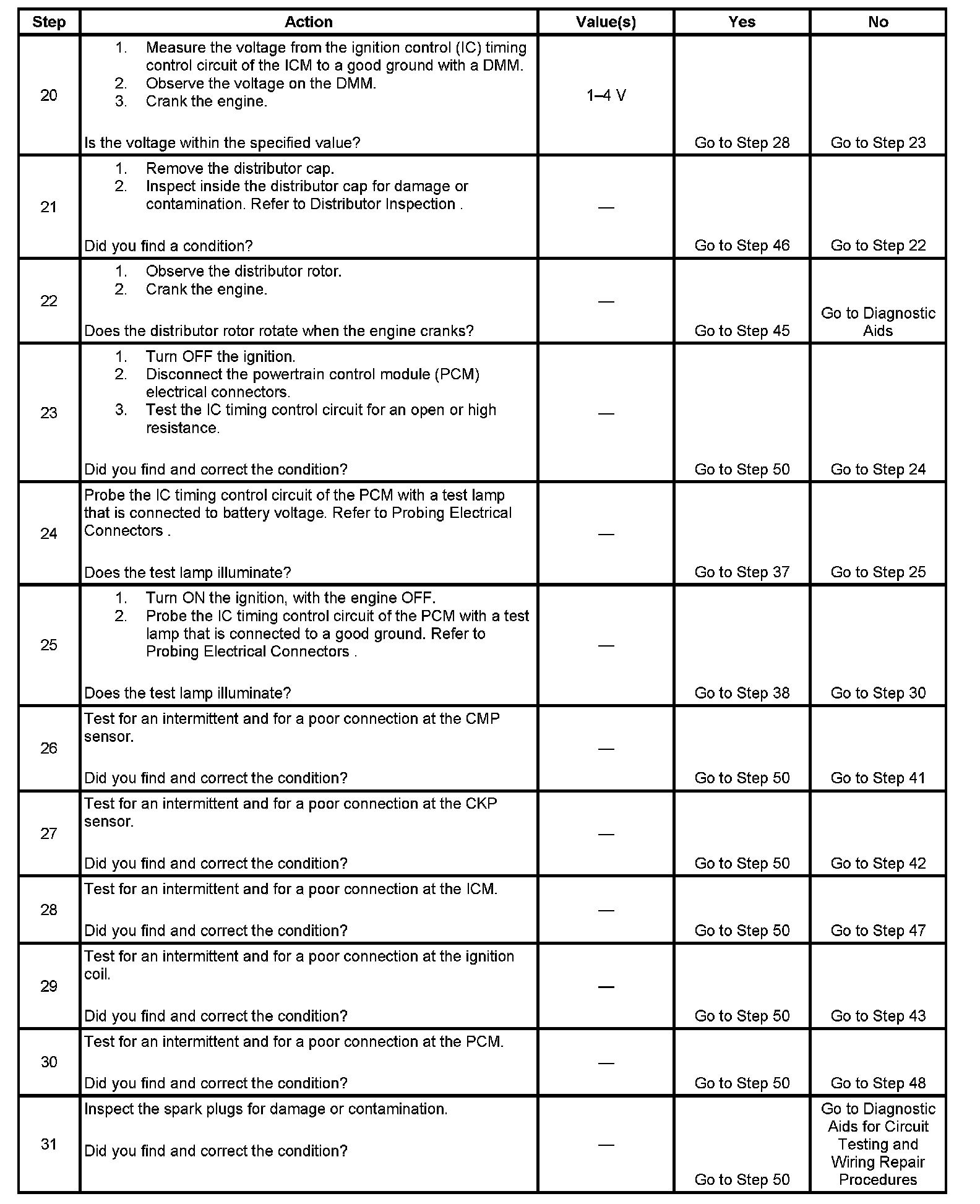 20. This step tests if the PCM is providing a timing control signal to the ICM.