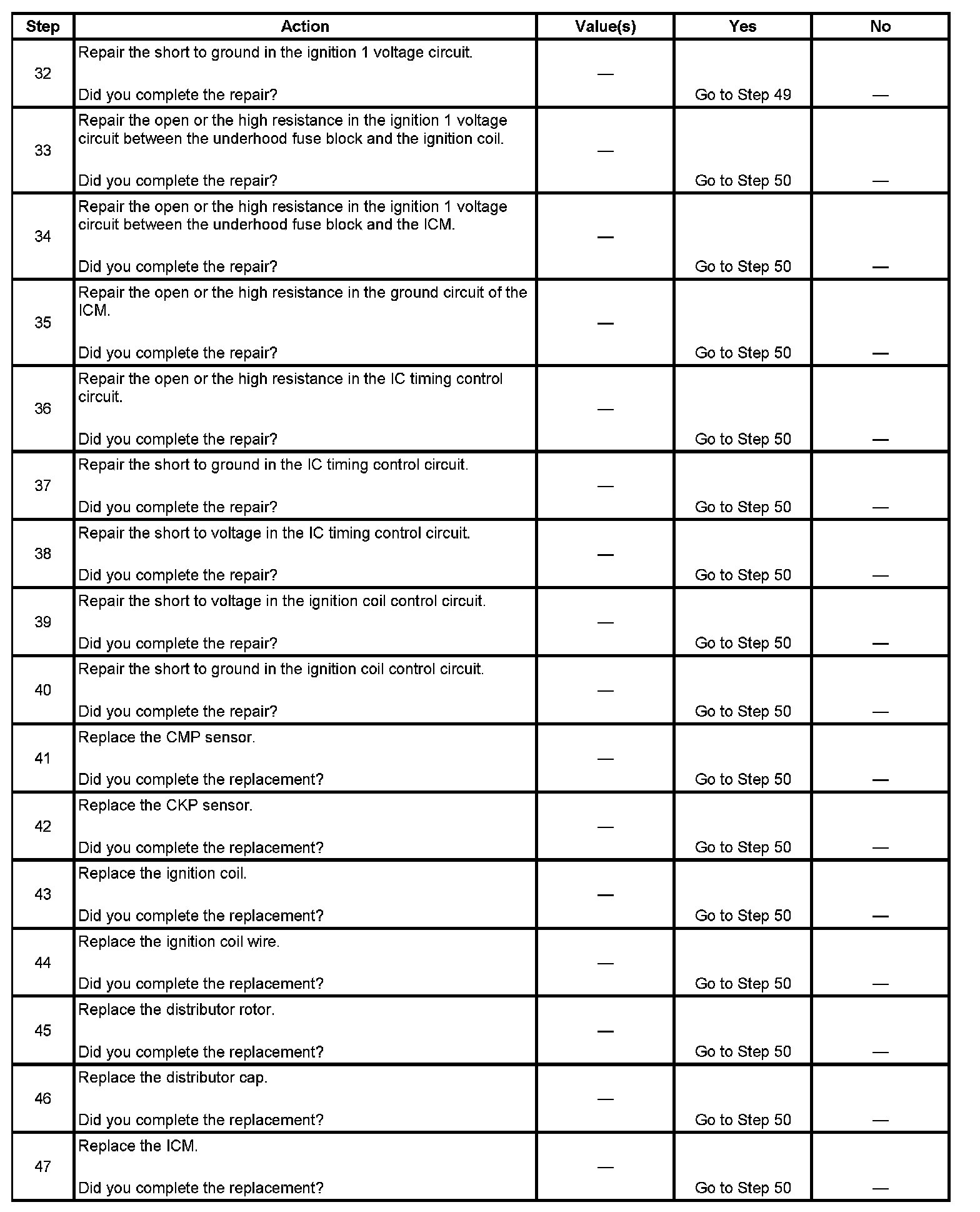 4. This step tests for an internally shorted CMP sensor.