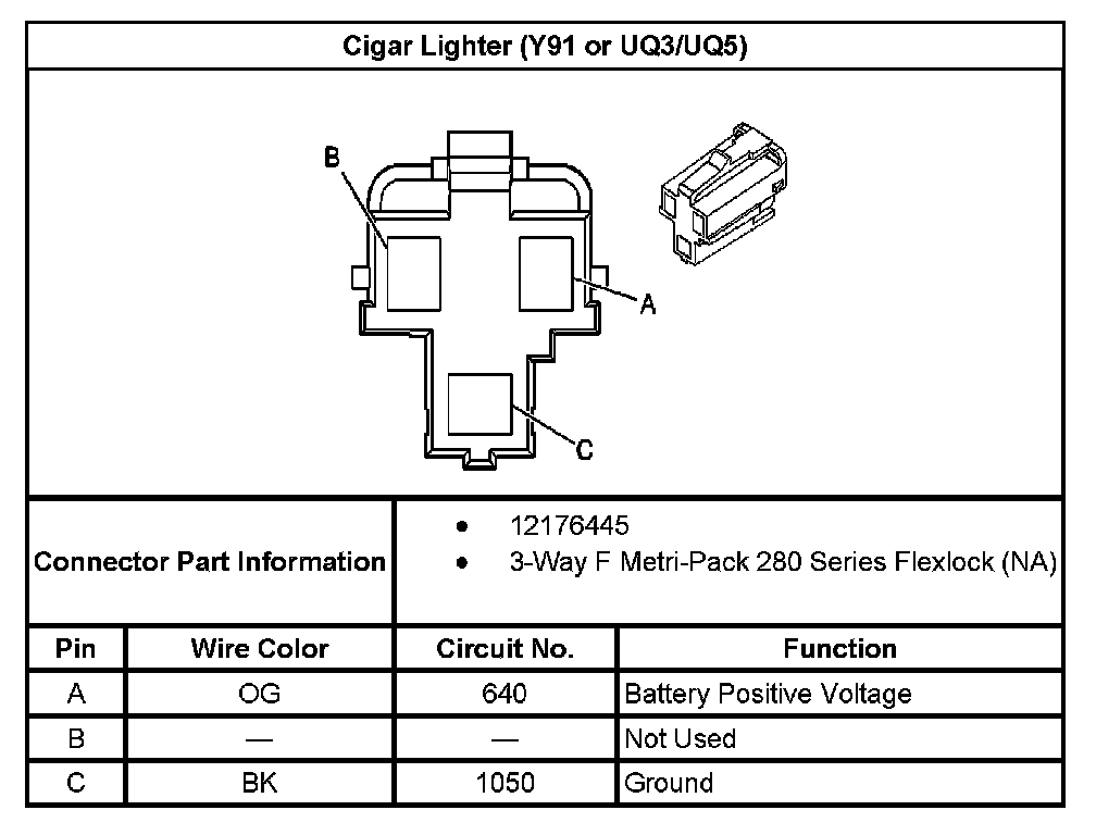 Cigar Lighter (With RPO Code Y91 Or UQ3/UQ5):