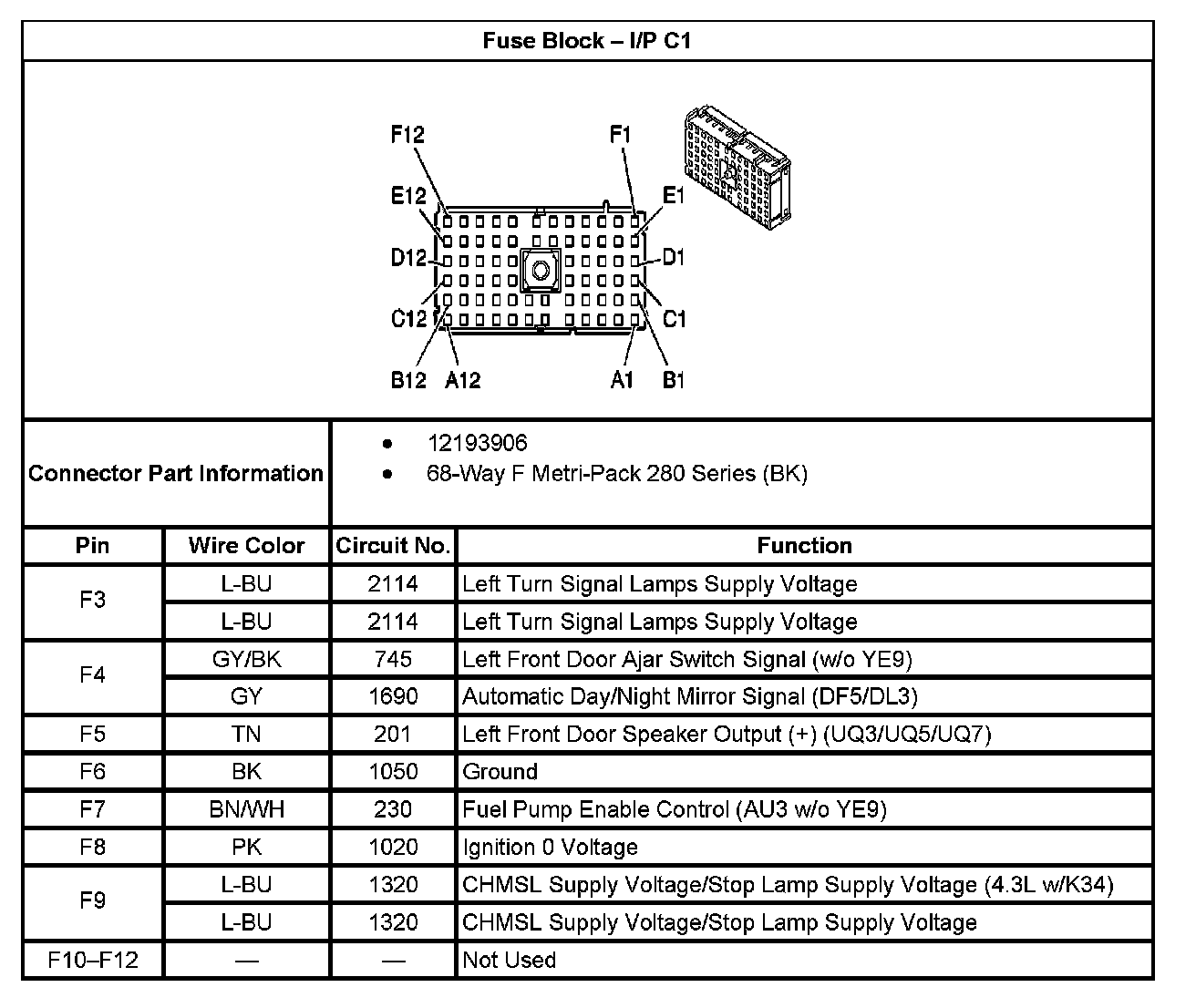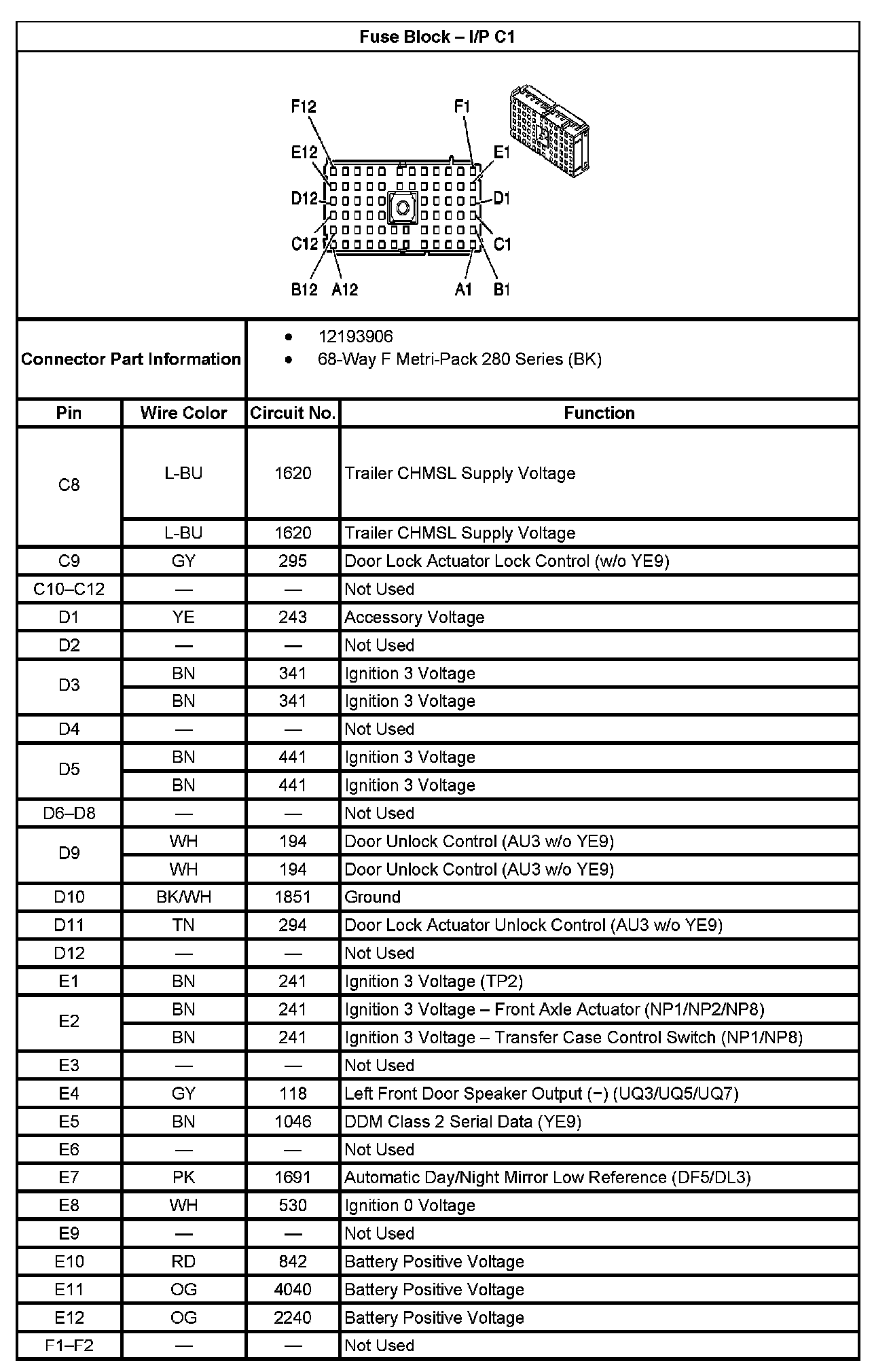 Fuse Block - I/P C1 (Part 3):
