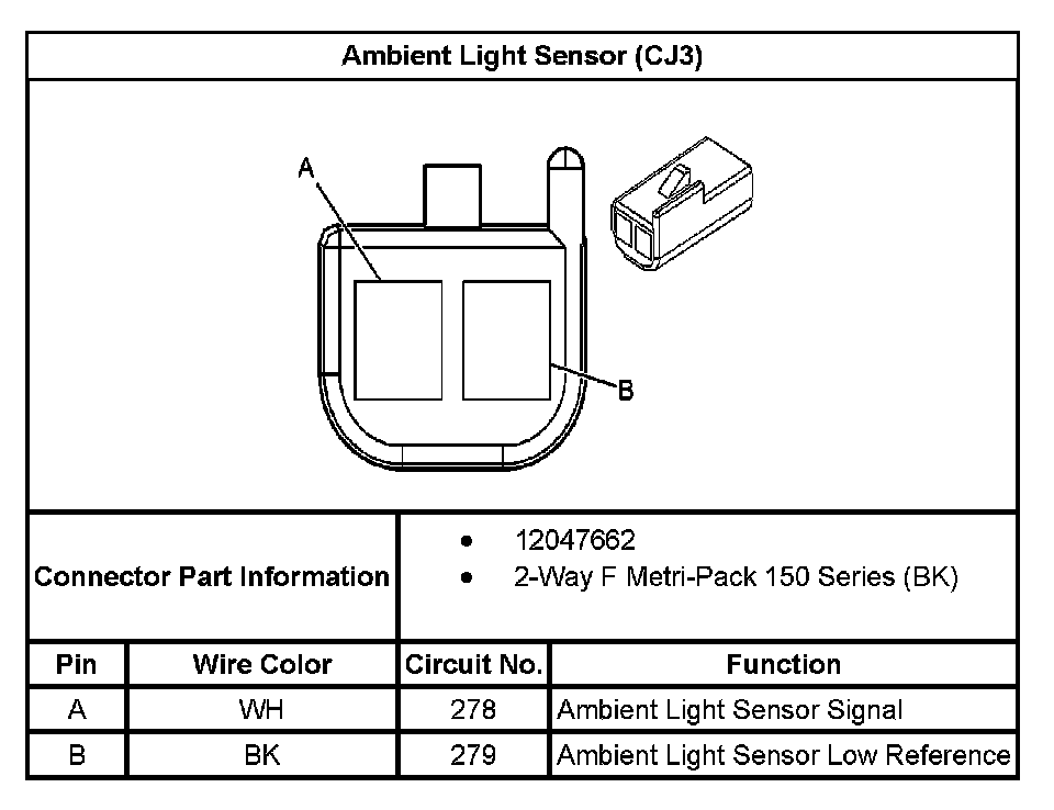 Ambient Light Sensor (With RPO Code CJ3):