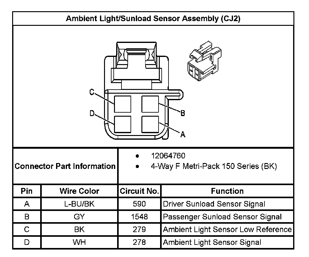 Ambient Light/Sunload Sensor Assembly (With RPO Code CJ2):