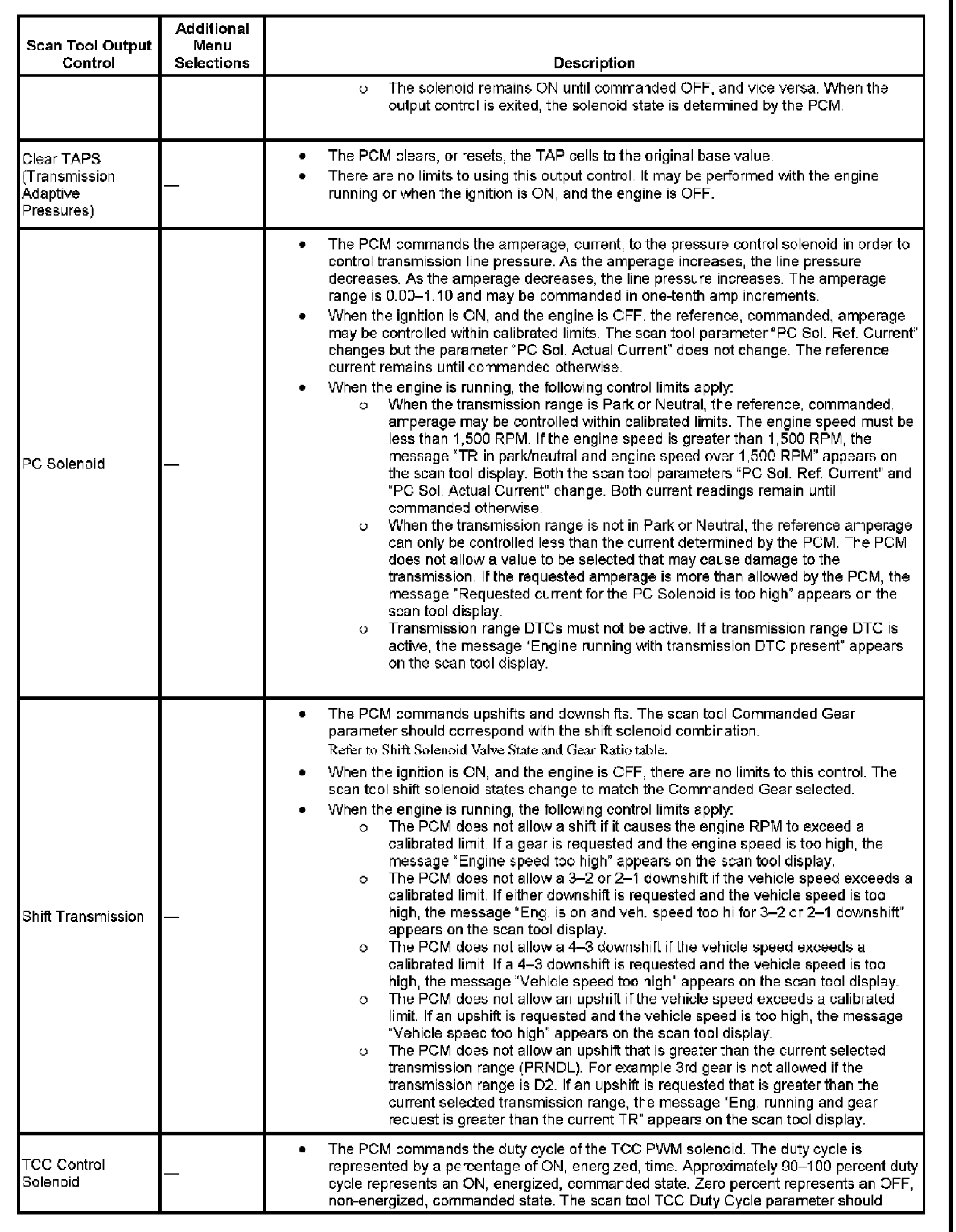 Scan Tool Output Controls (M30/M32):