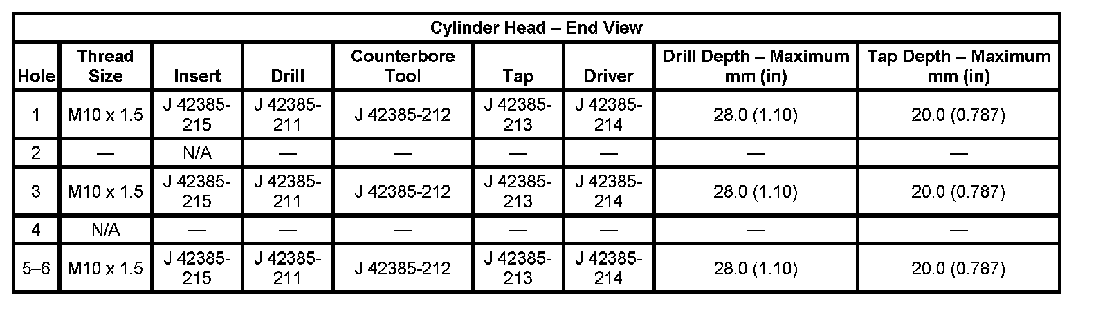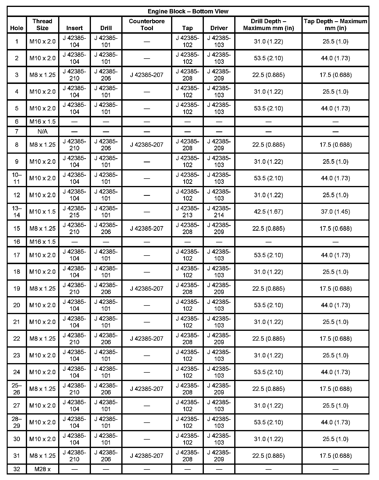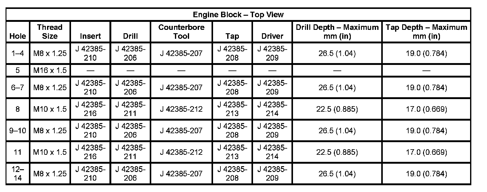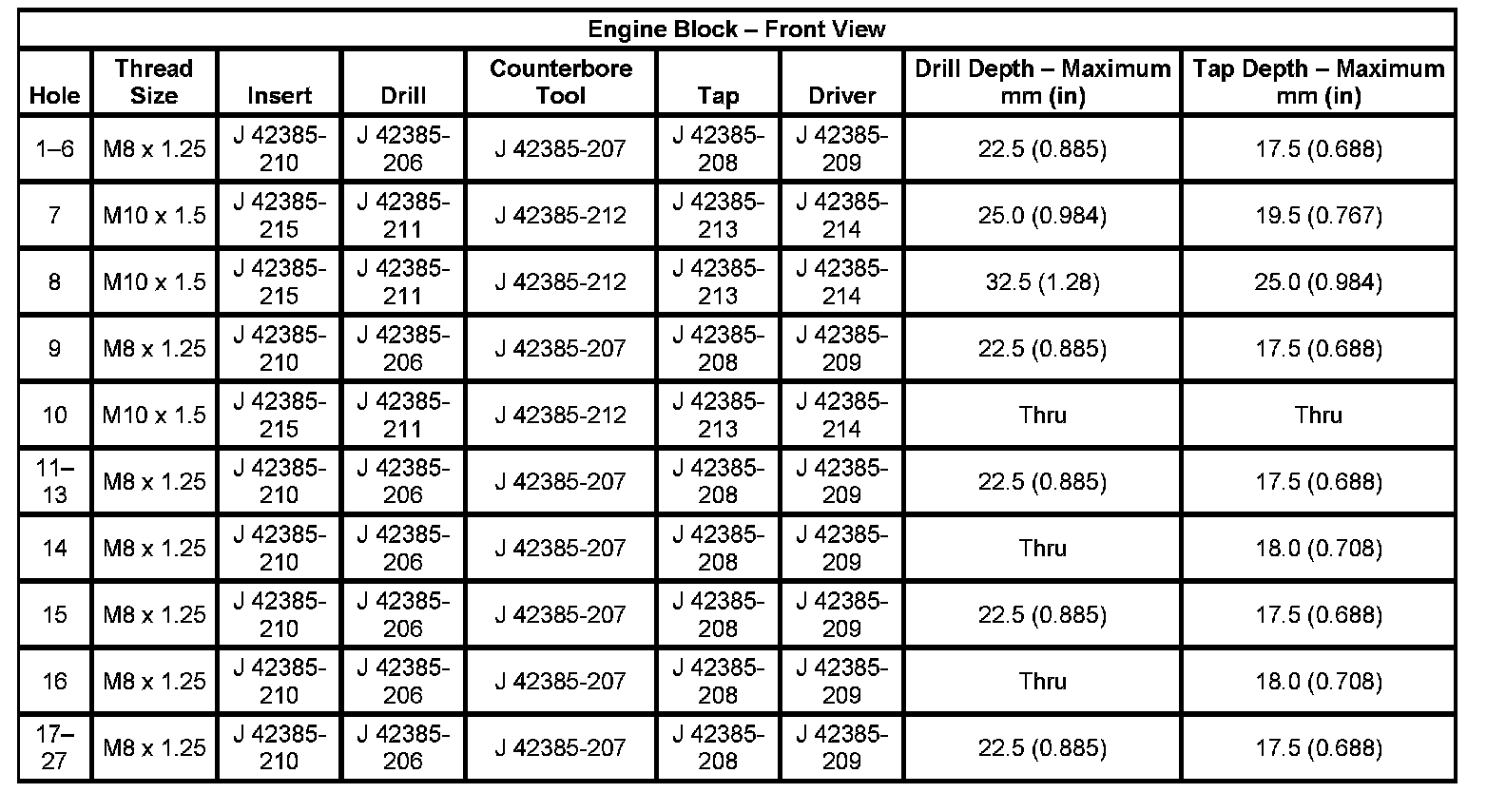 Thread Repair SpecificationsEngine Block - Front View: