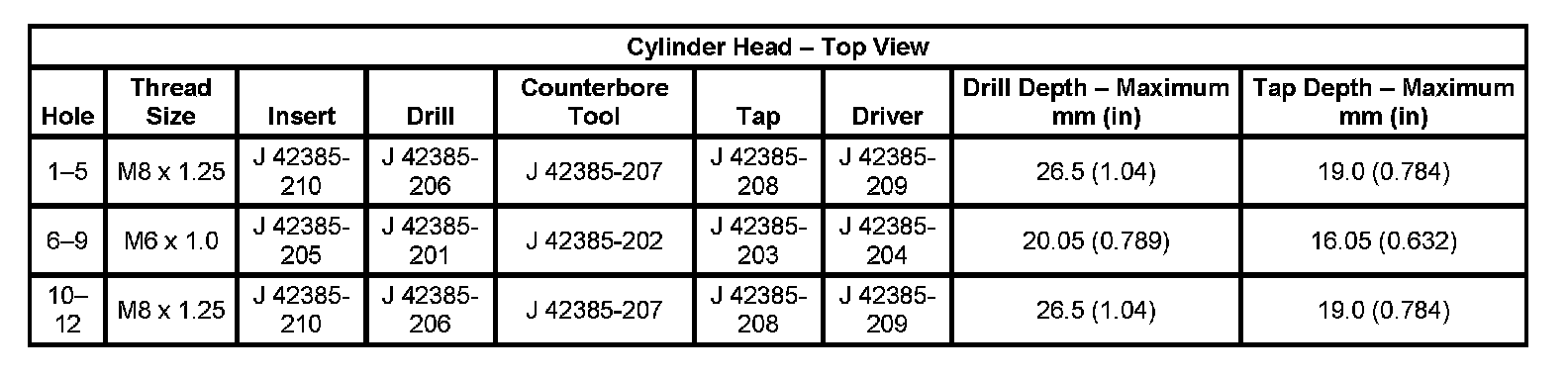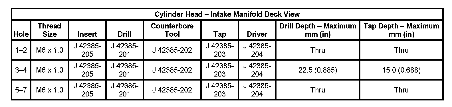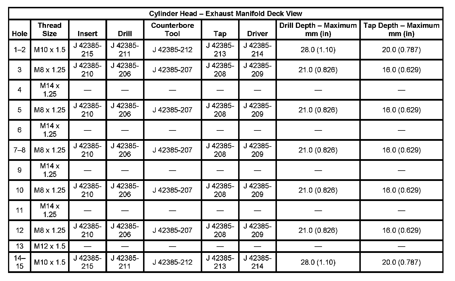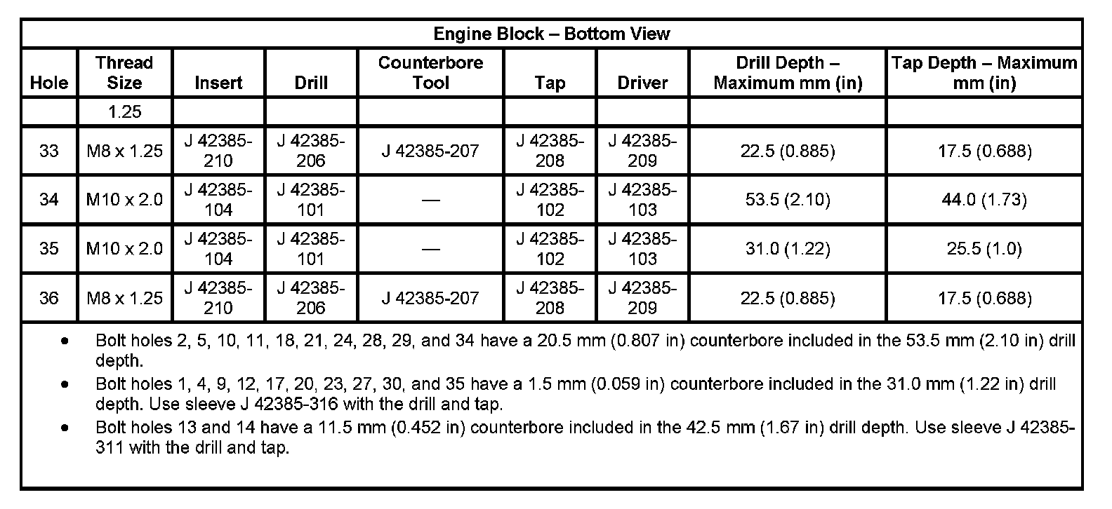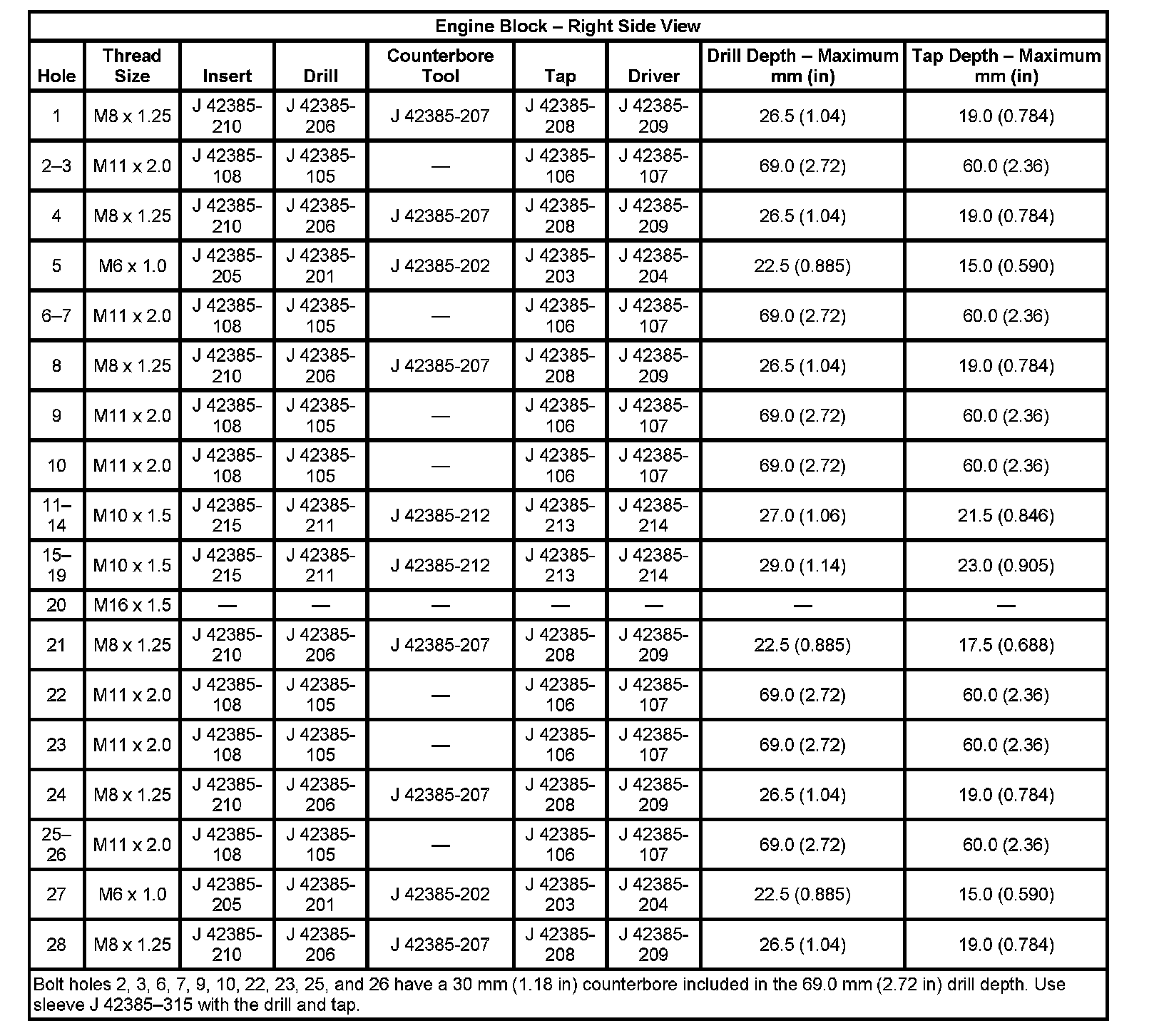 Thread Repair SpecificationsEngine Block - Front View: