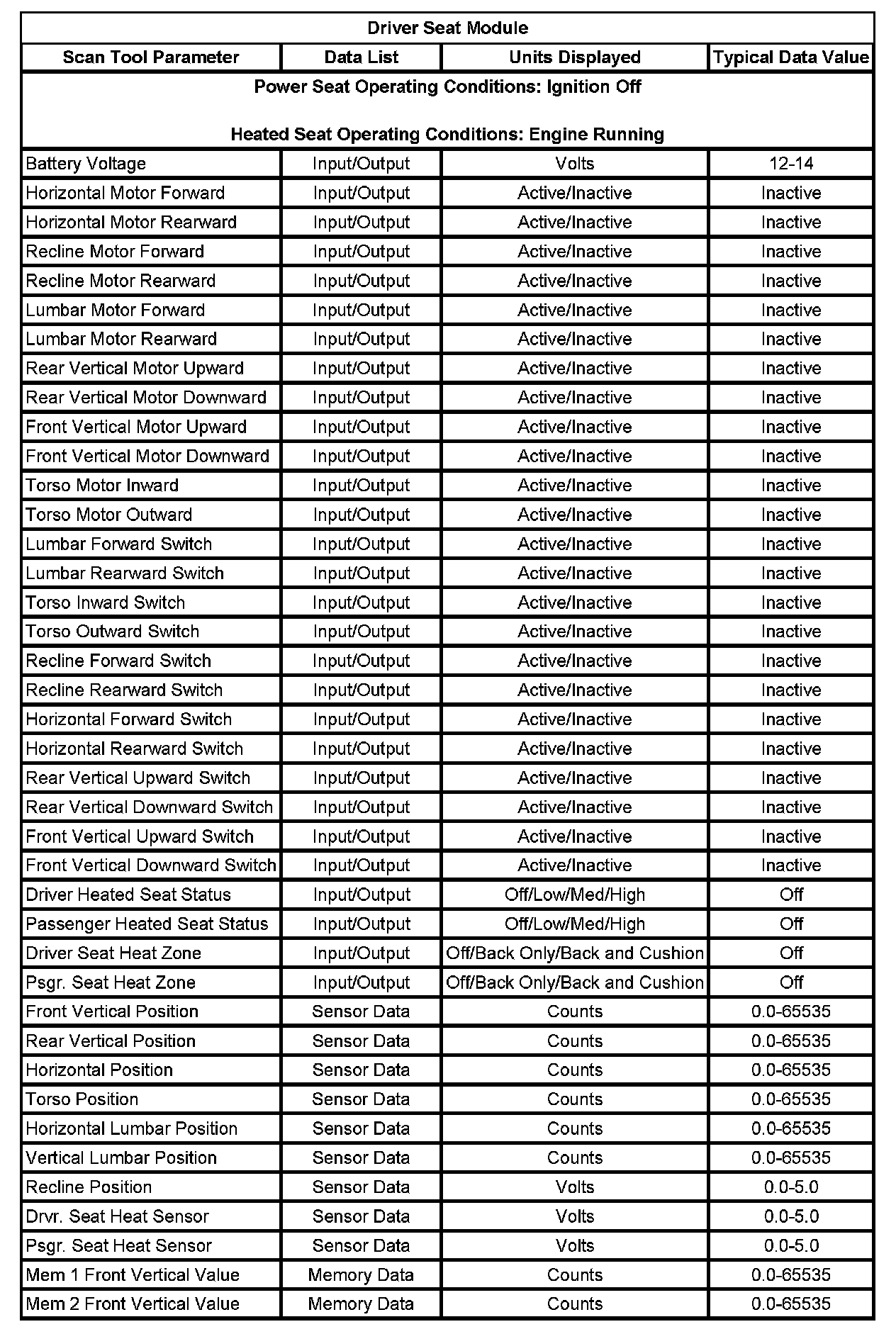 Scan Tool Data List