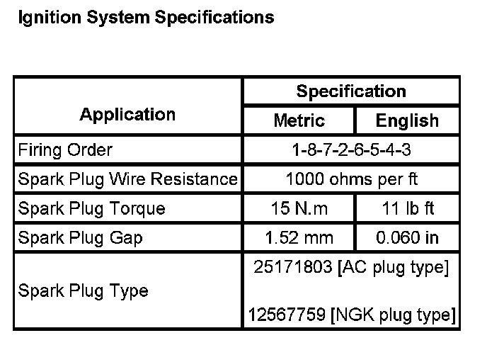 Ignition System Specifications: