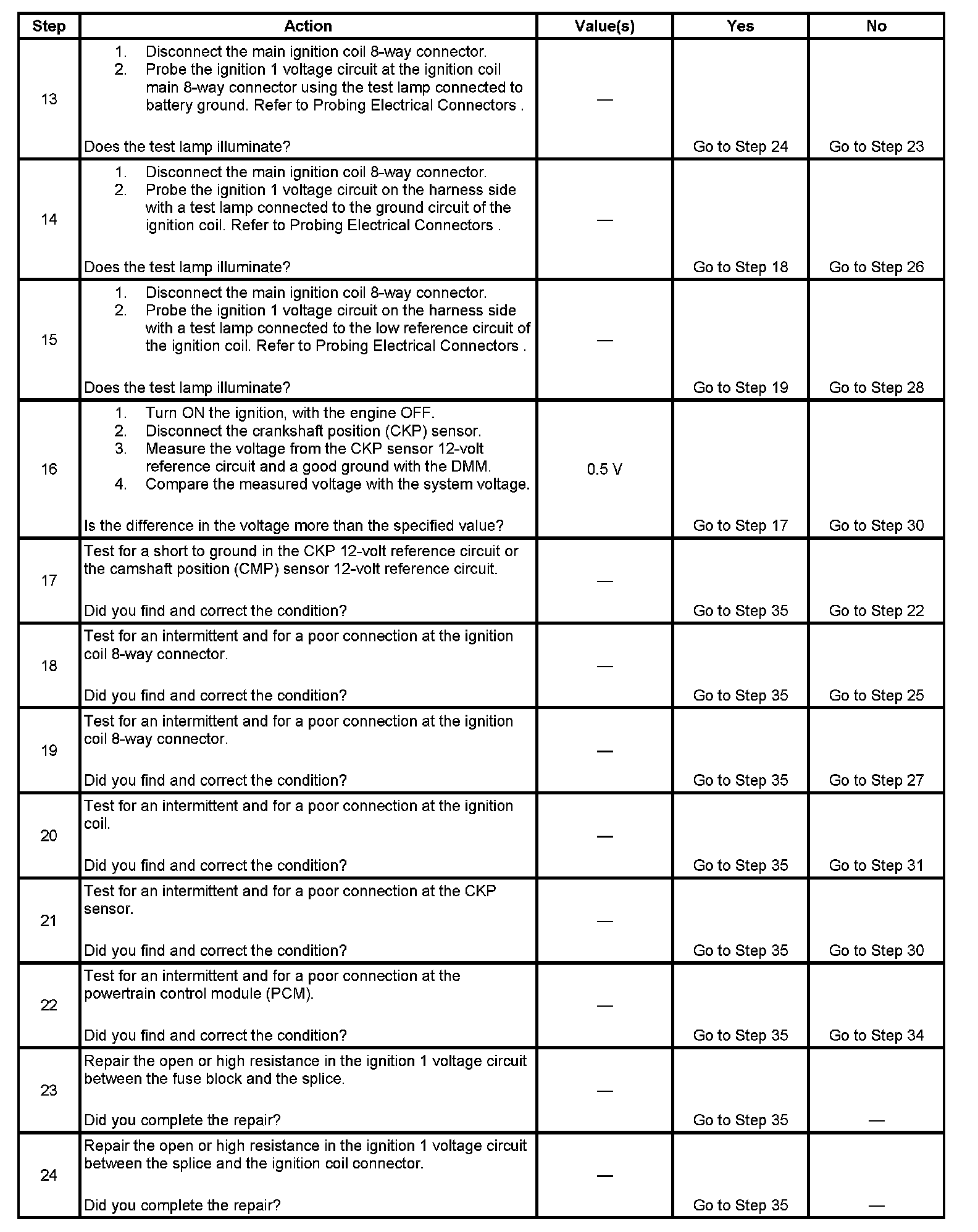 12. A good indication that the fuse is open is all off the misfire current counters are incrementing on one side of the engine. Inspect the ignition positive voltage circuit for a grounded circuit. If the fuse is open and the ignition coil circuits are OK, inspect the injector circuits for being grounded.
