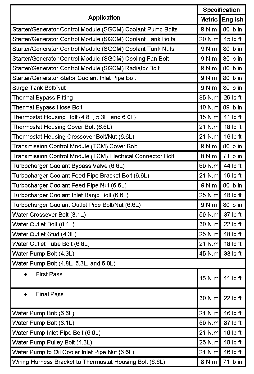 Fastener Tightening Specifications: