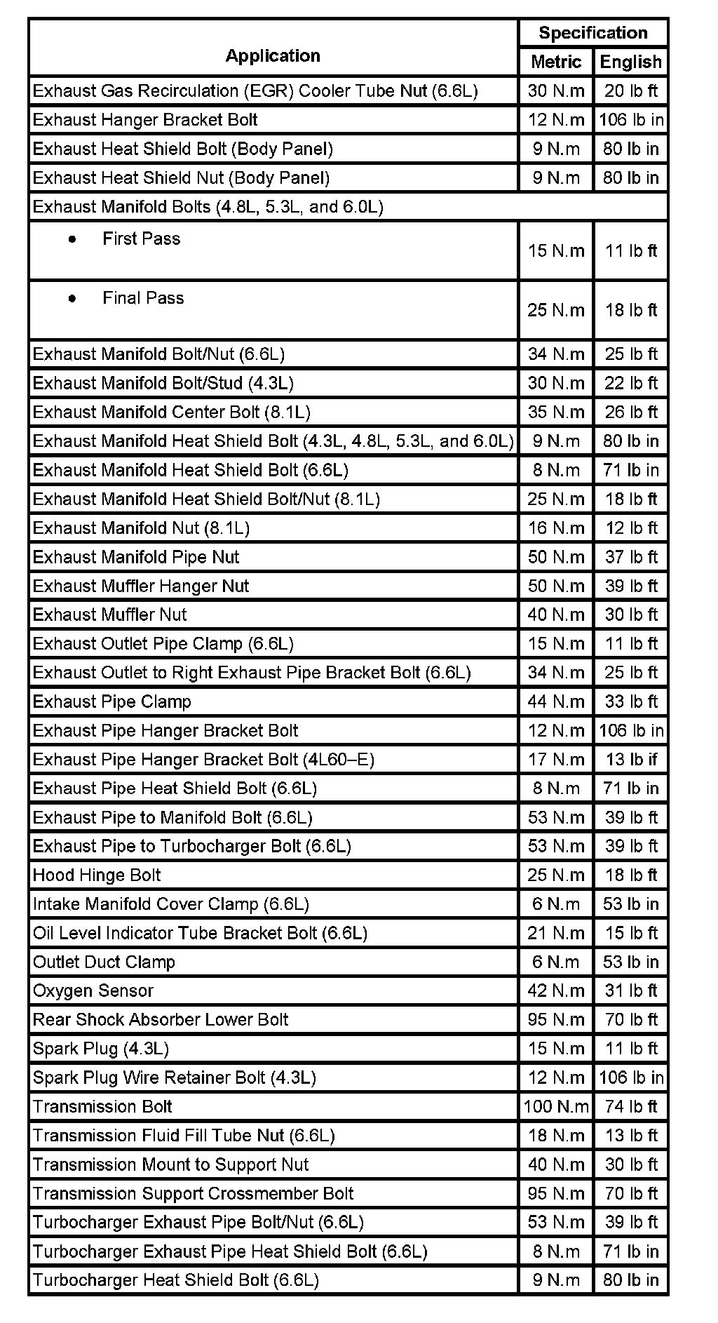 Fastener Tightening Specifications