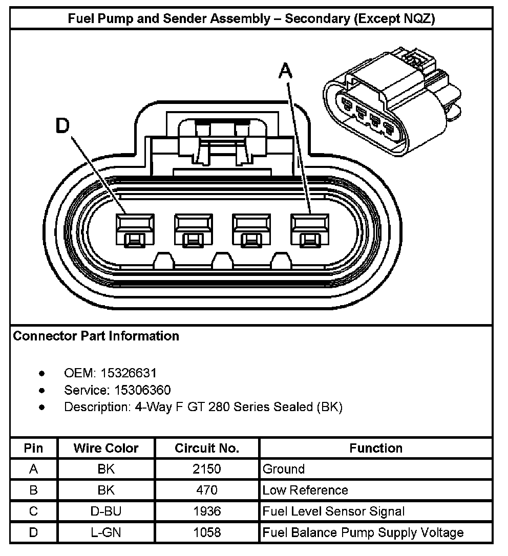 Fuel Pump And Sender Assembly - Secondary (Except RPO Code NQZ):