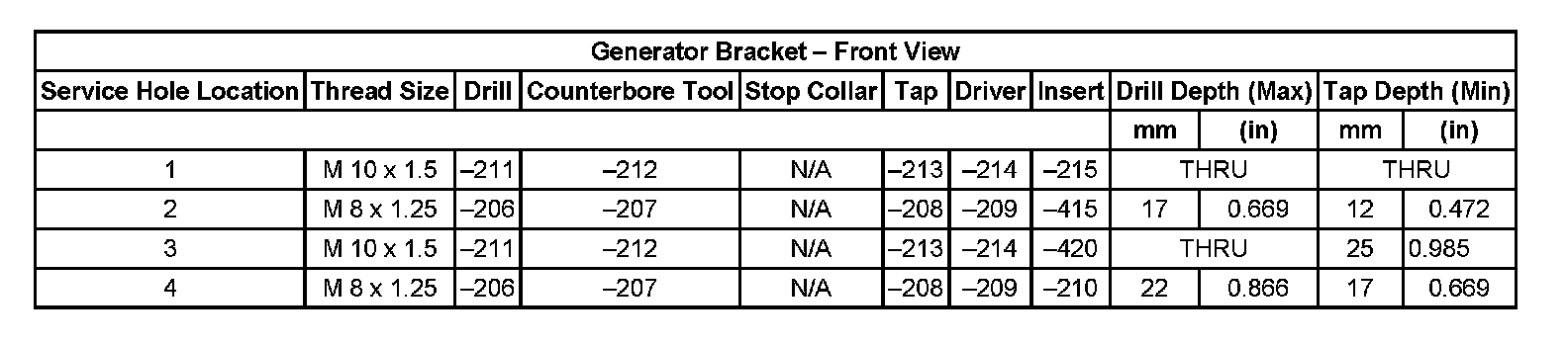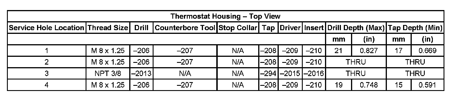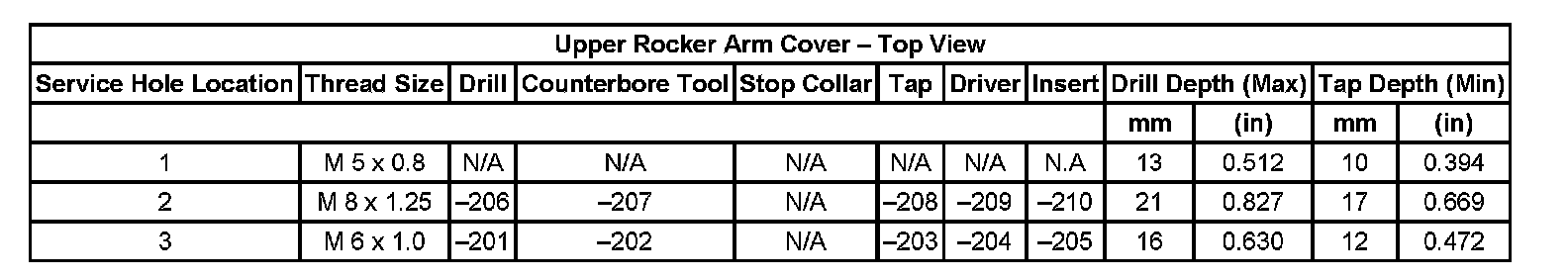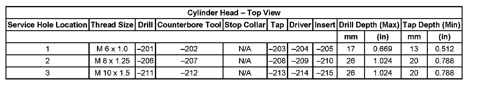 Thread Repair Specifications Cylinder Head - Exhaust View Cylinder Head: