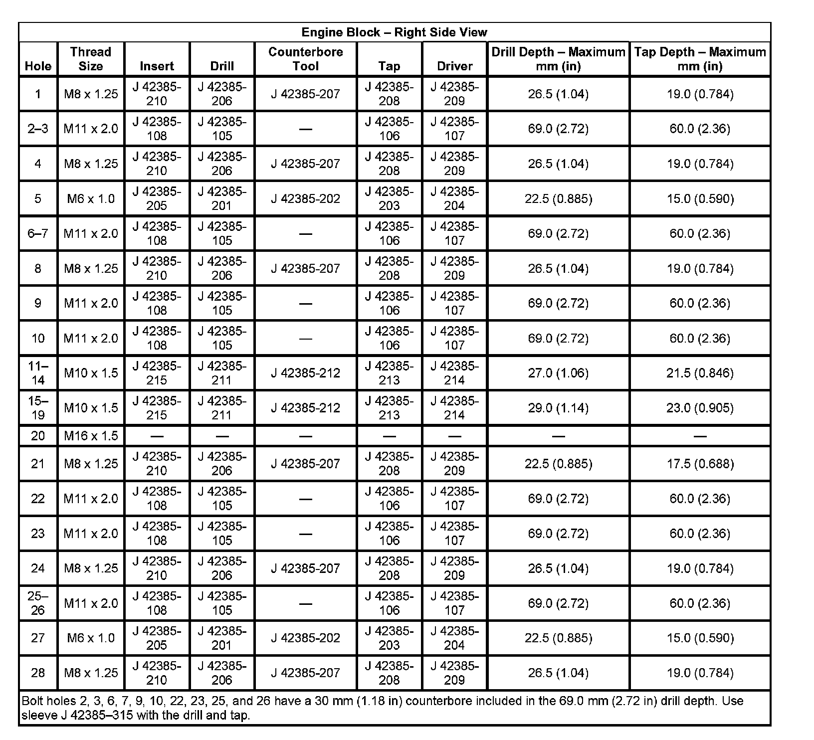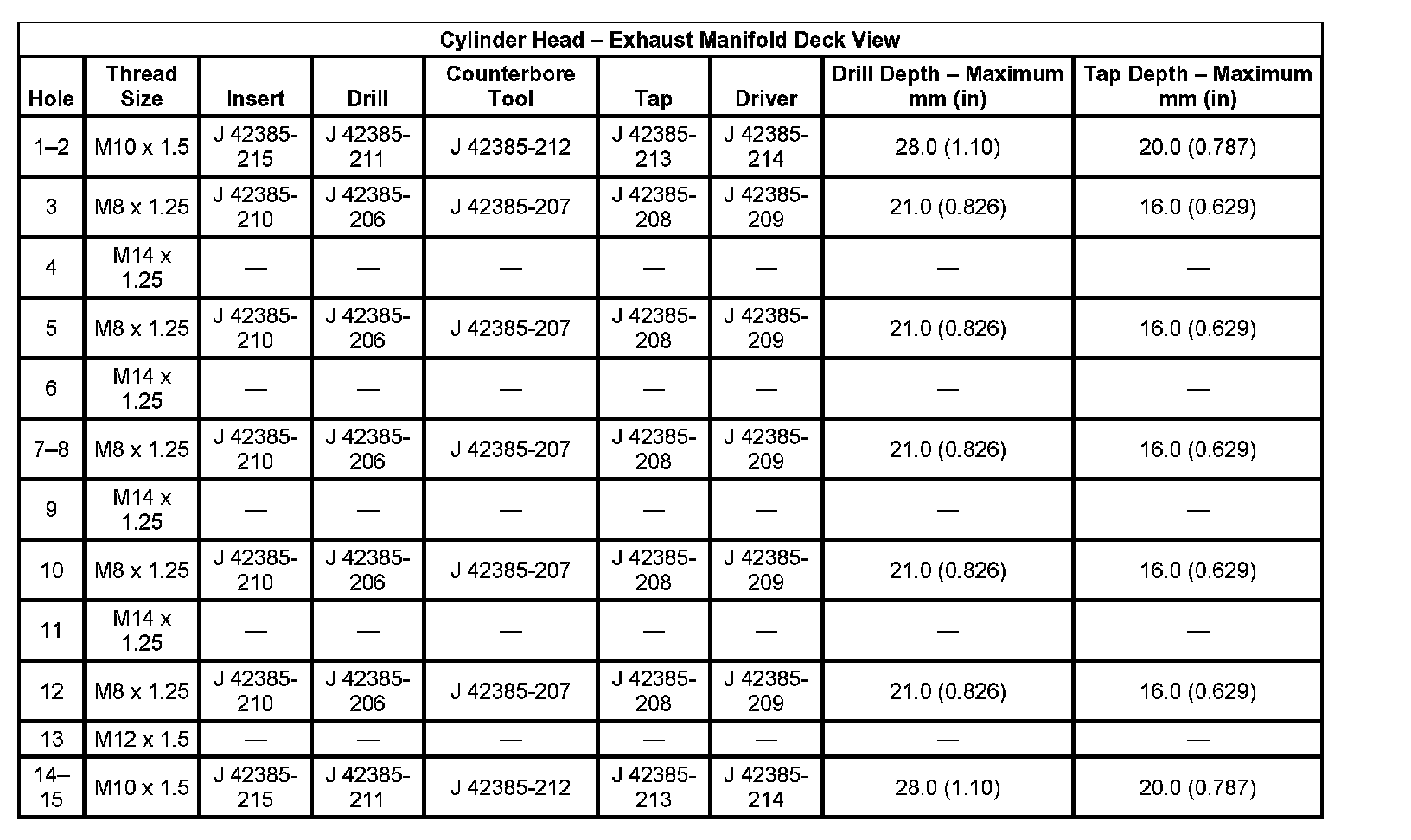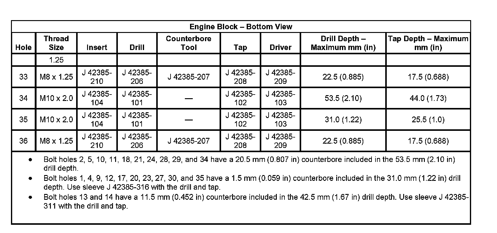 Thread Repair Specifications Engine Block: